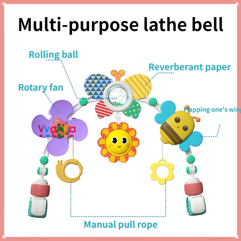 Baby Bed Bell Baby Toy Musical Crib Mobile Bed Bell Holder Rattles Comfort Toys Sensory Development Hanging Toys for Newborn Infant Boys Girls Stroller Mobile Crib Bell Toy for Baby Stroller Crib Playtime Entertainment