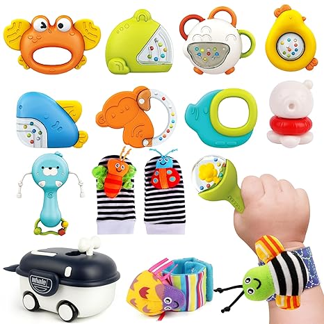 Baby Rattles 0-6 Months | Sensory Toys for Infants 6-12 Month, Wrist Rattle Socks, Foot Finder & Teething Toys | Newborn Toys Gift for Boys and Girls, Baby Shower Gifts Christmas Stocking Stuffers