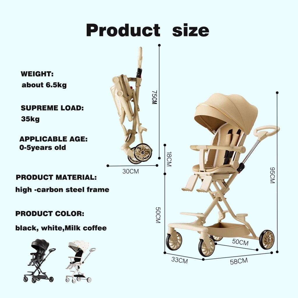 Baby Stroller Easy To Fold Portable Sit And Lie Down Reversible Two Way