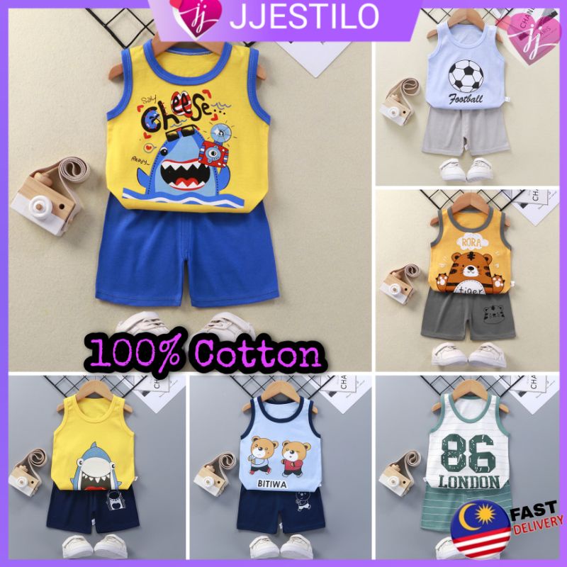Baju Baby Boy Girl Newborn Singlet Shirt Baju Bayi Lelaki (0-36months) Tshirt Budak Tanpa Lengan Sleeveless Cotton
