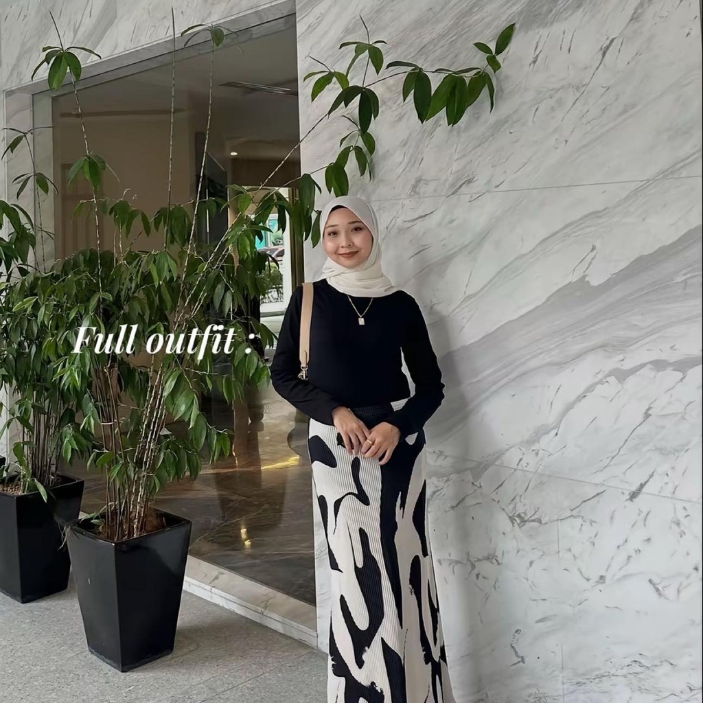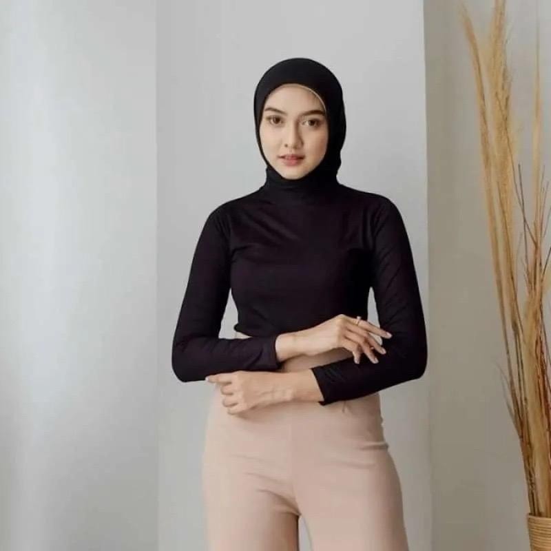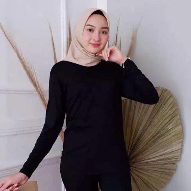 Baju Inner Manset Lengan Panjang U-neck Plus Size 40-100kg Wanita Muslimah Perempuan
