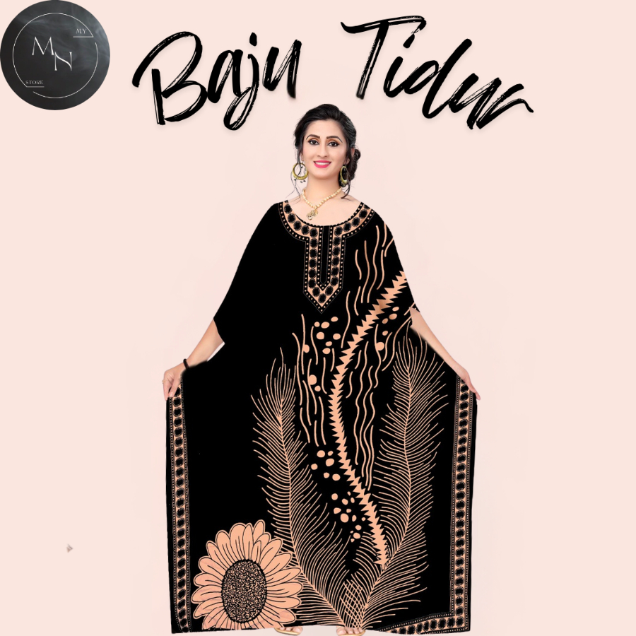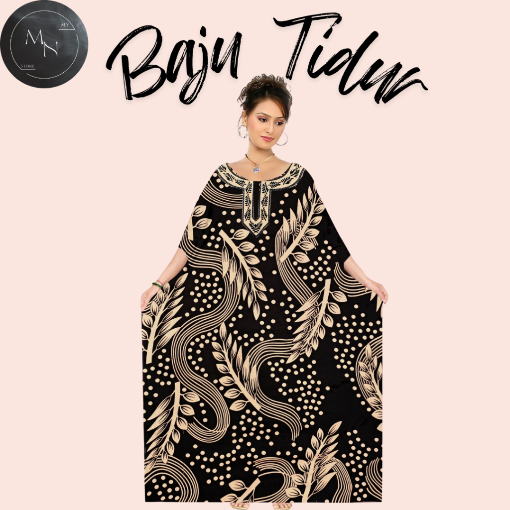 Baju Kaftan Kelawar Viral Seri Hitam Eksklusif Cotton Wanita Printed Clothing Colour