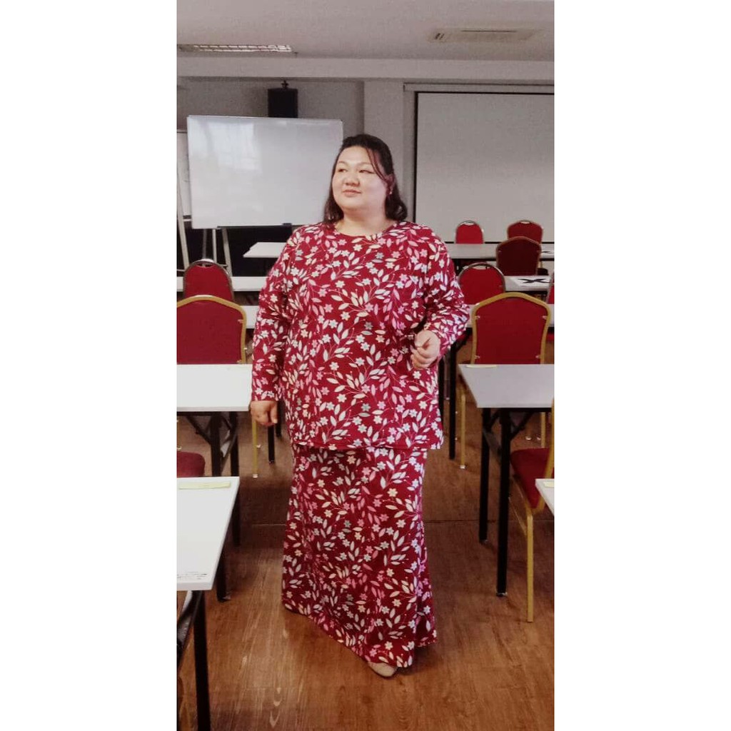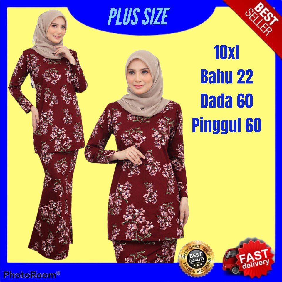 BAJU KURUNG COTTON PLUS SIZE 10XL MINI MODEN [Ukuran Dada 60"] MAROON COLOR