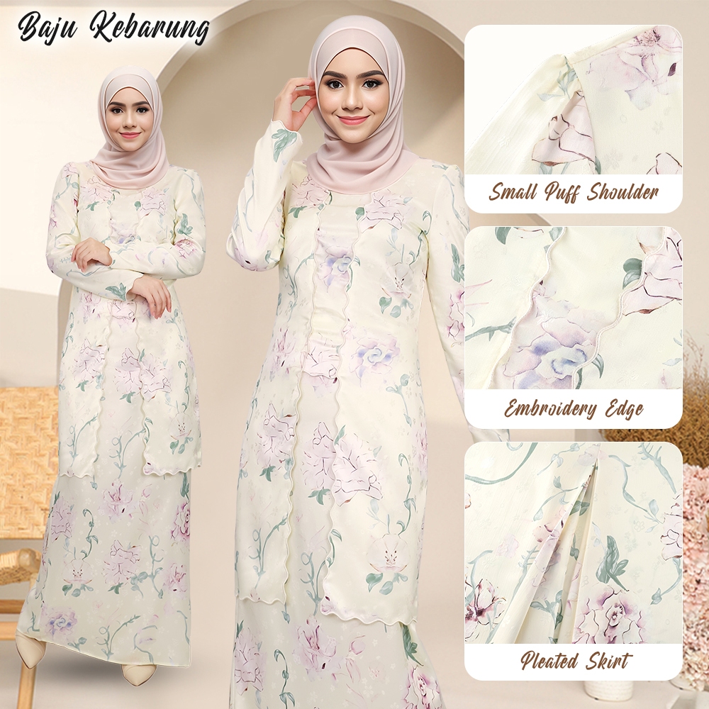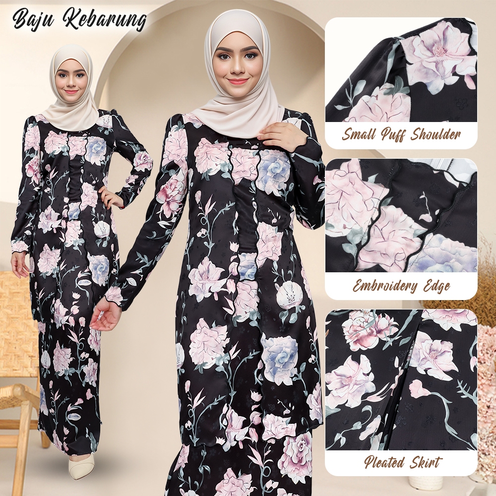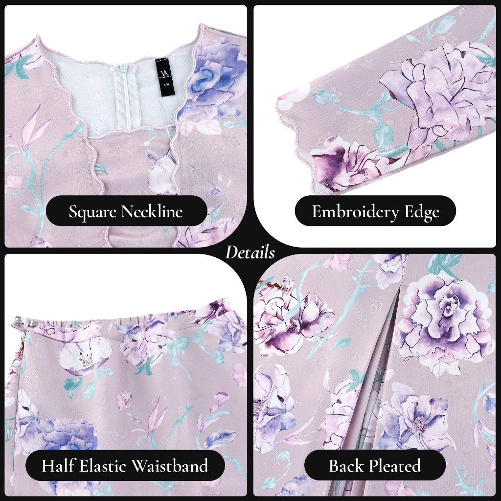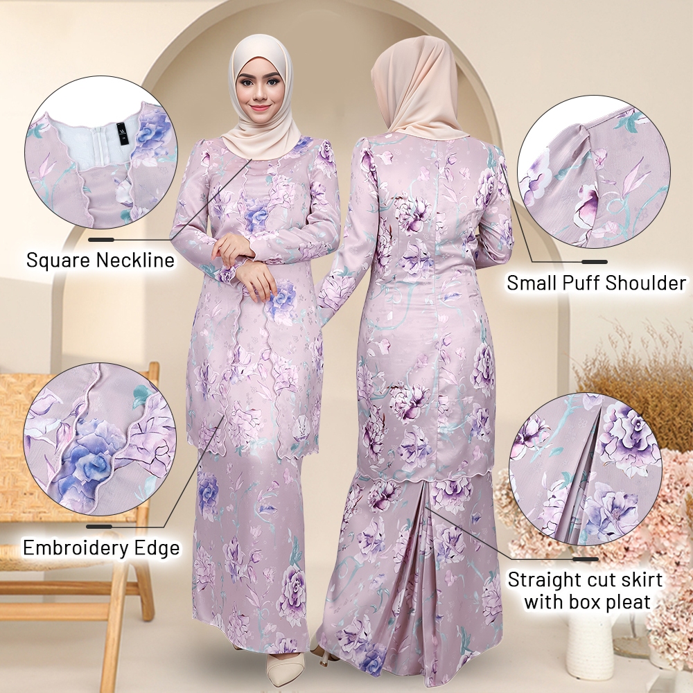 Baju kurung kedah Kebaya bunga Baju Kurung Moden Sulam Pleated Bridesmaids Baju Raya 2025 Sesuai Untuk Nikah/ Tunang