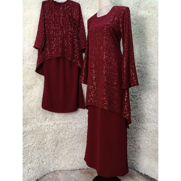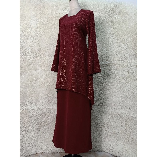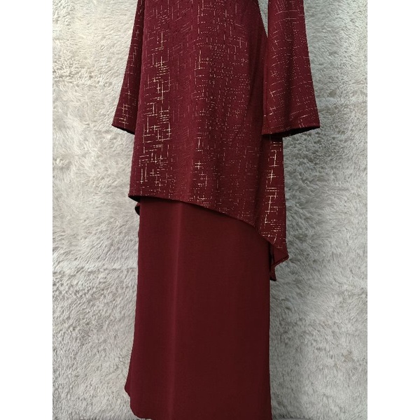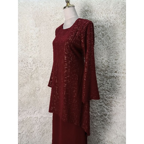 Baju Kurung Moden Fishtail Sedondon Mak Anak Meroon Blood Red Limited Edition