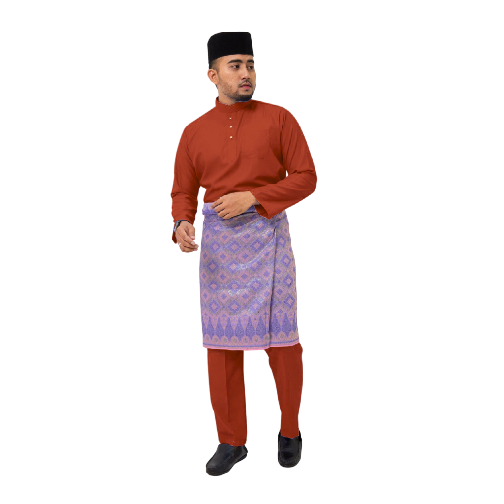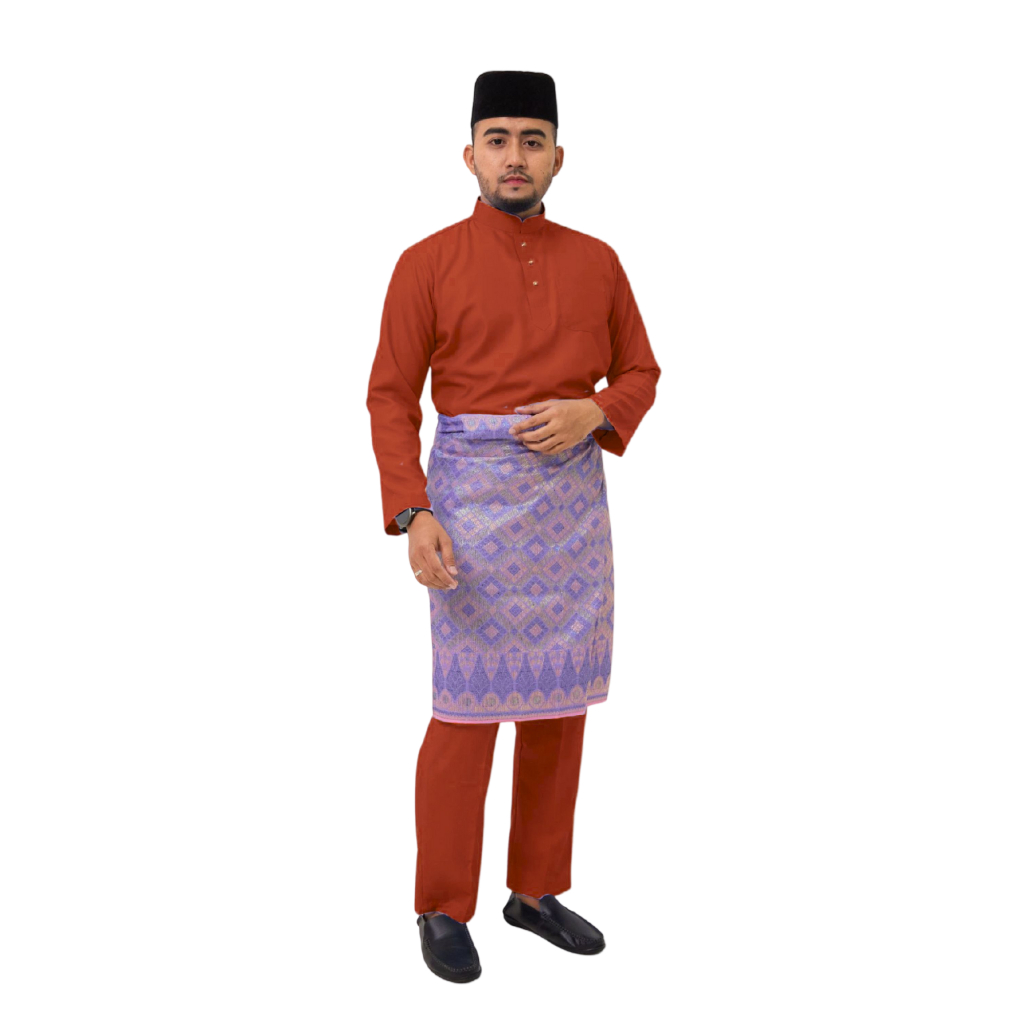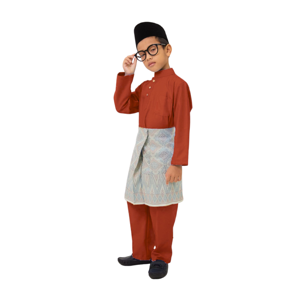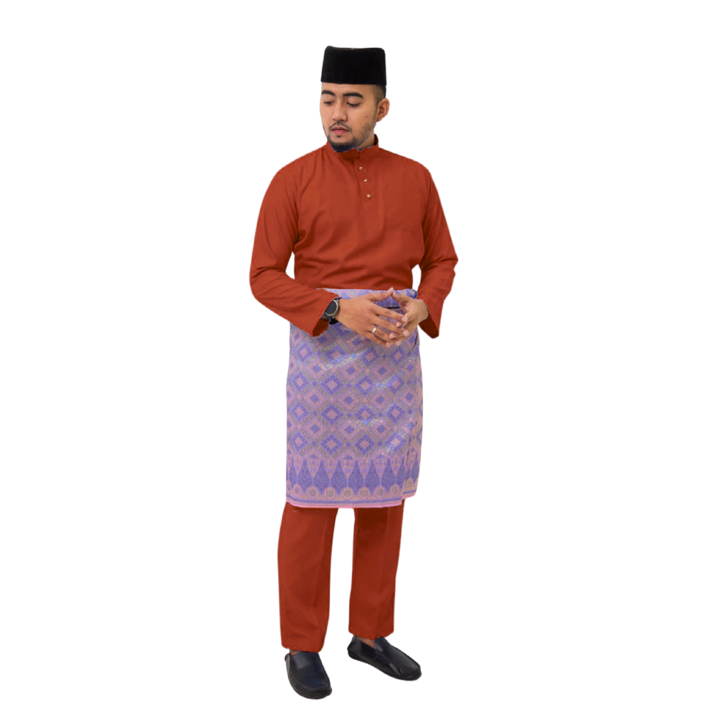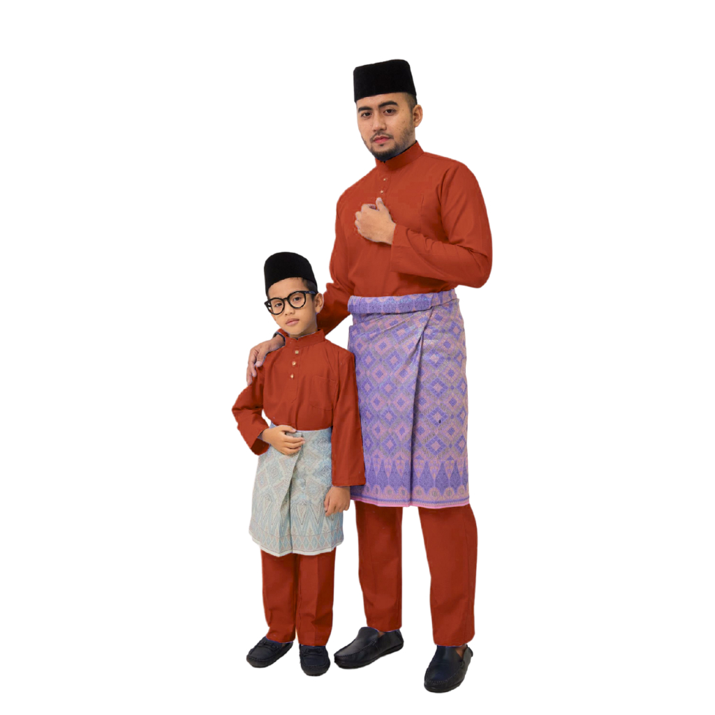 BAJU MELAYU SEMPURNA RAYA 2025 / Baju Melayu Slim Fit Budak & Dewasa WARNA BRICK ORANGE SEPASANG Kain Cotton C018BM/BMC2