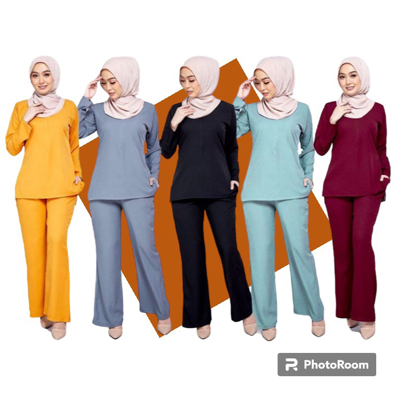 BAJU MUSLIMAH DAN PALAZZO BERZIP DAN POCKET KANAN -CEY IRONLESS MUSTARD/GREY/BLACK