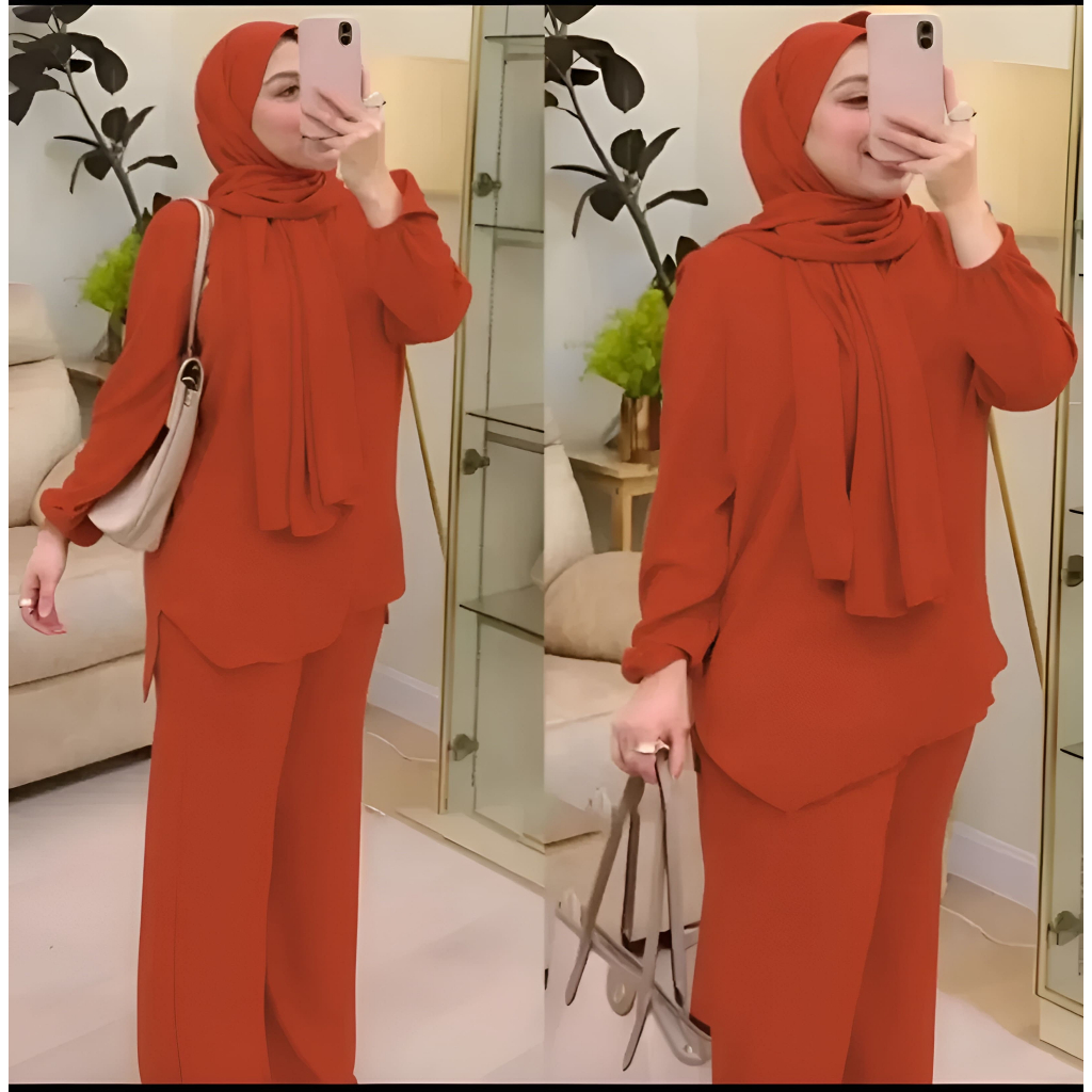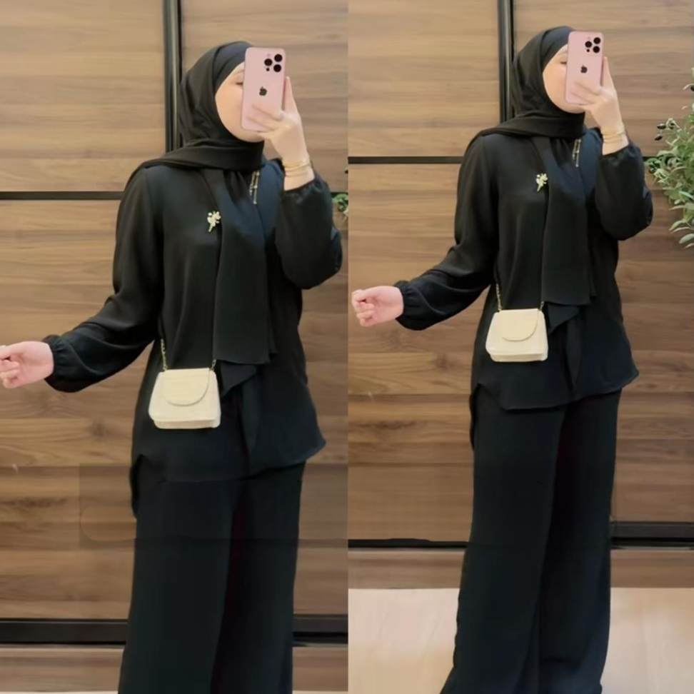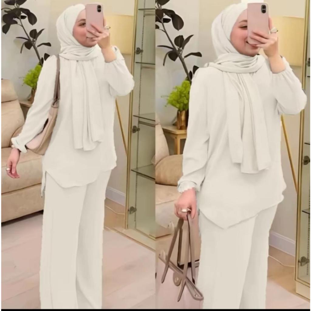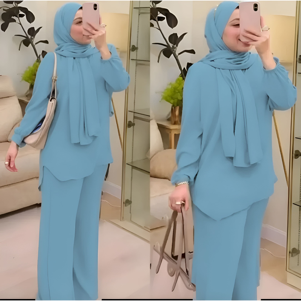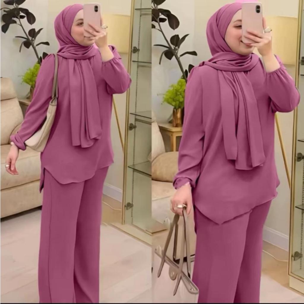 Baju muslimah dan seluar set zahra ironless CEY