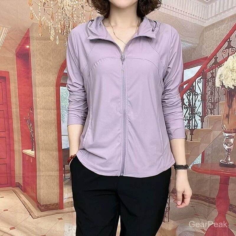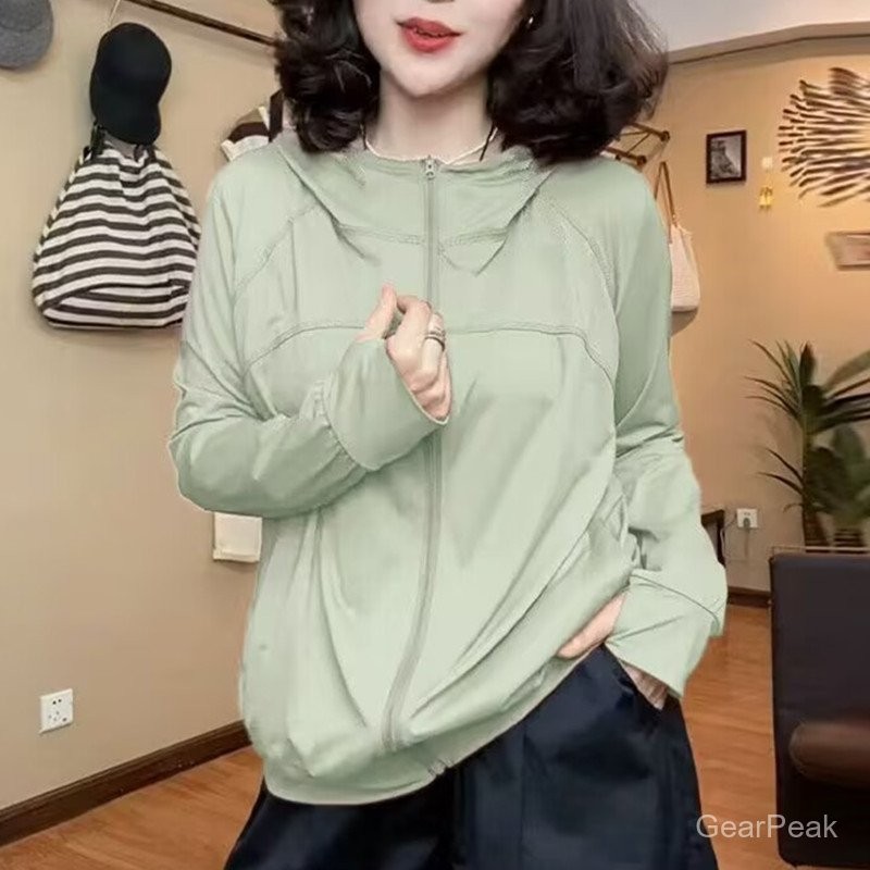 Baju Pelindung Matahari Ais Sutera Cepat Kering Pakaian Luar Wanita Musim Panas Perlindungan UV Jaket Nipis Luaran Baju Pelindung Matahari Sukan