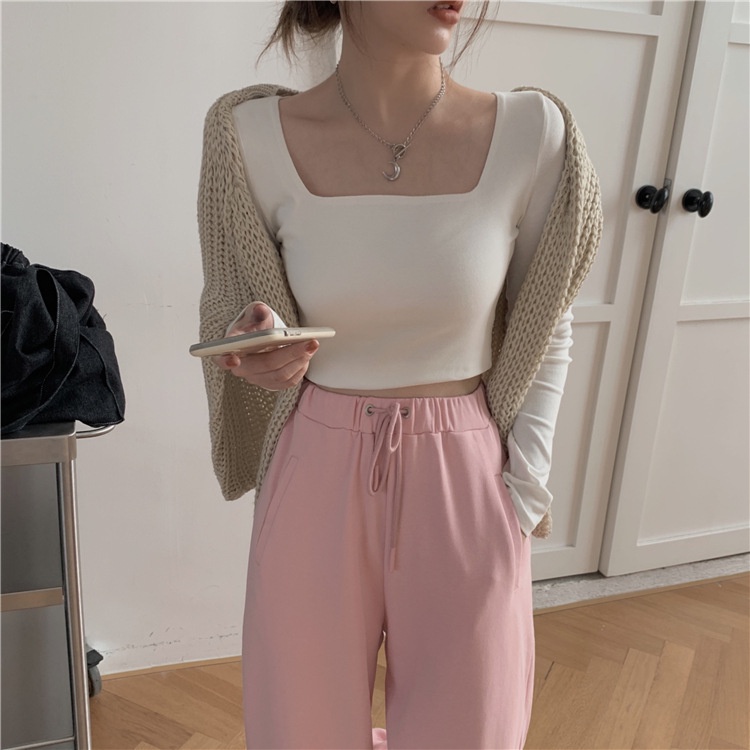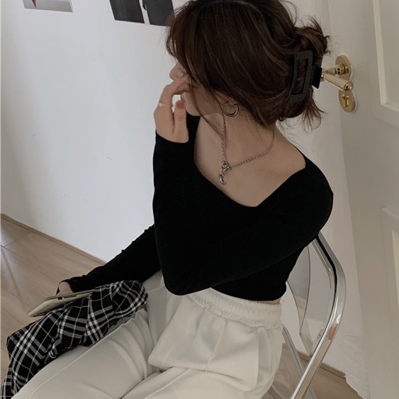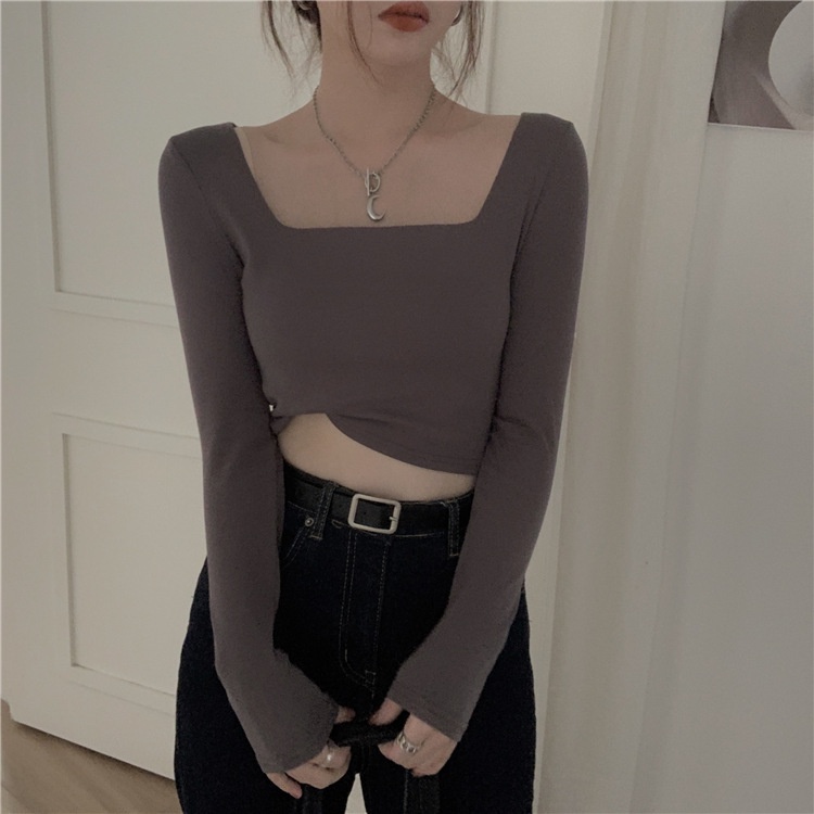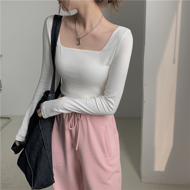 Baju Raya Casual Plain Basic Square Neck T-Shirt for Women Long Sleeve T-011