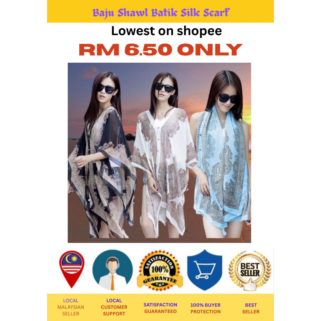 Baju Shawl Batik Silk Scarf Woman Clothing Scarf Baju Cantik Shawl Pantai Scarf Summer