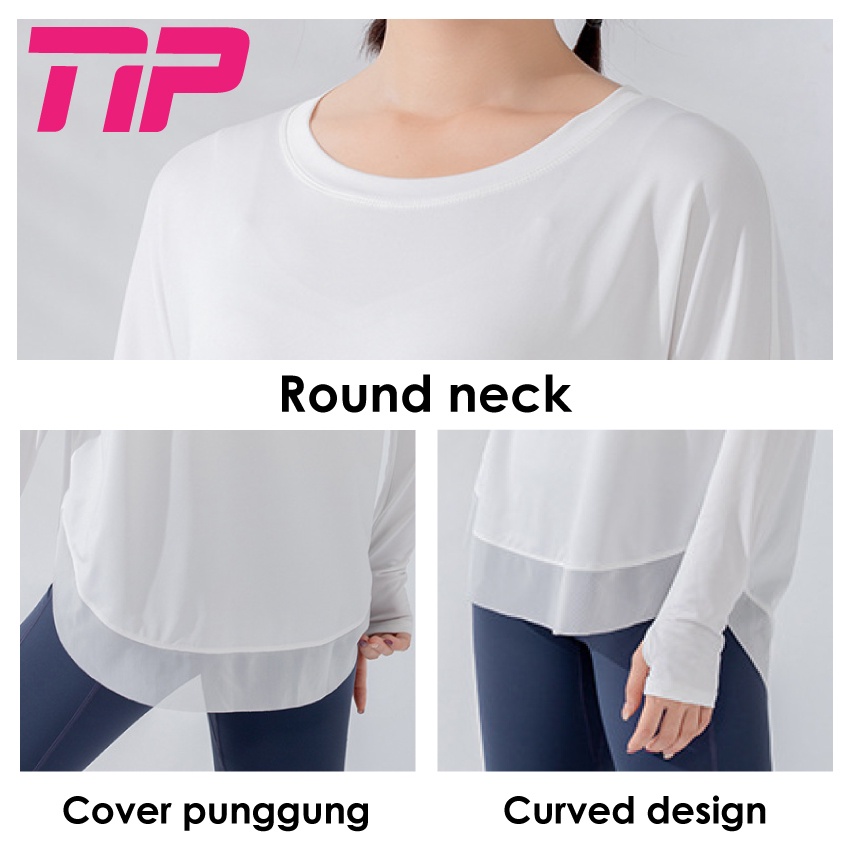 Baju Sukan Lengan Panjang Cutting Longgar Cepat Kering Women Sport Shirt/Yoga Shirt Long Sleeve Loose Cut (M-5XL)