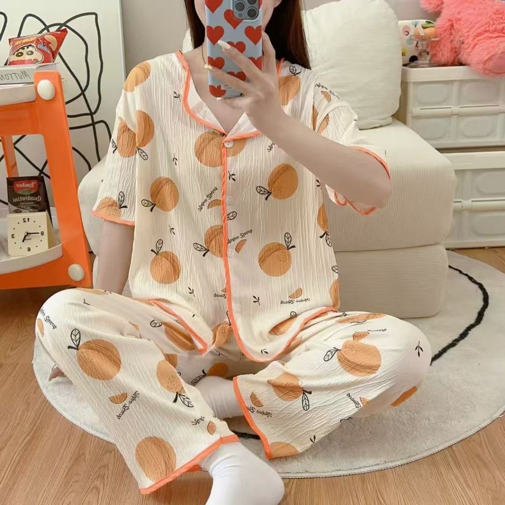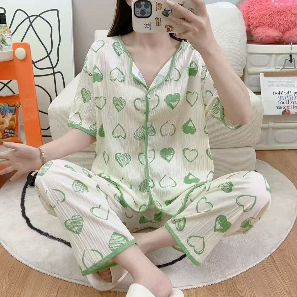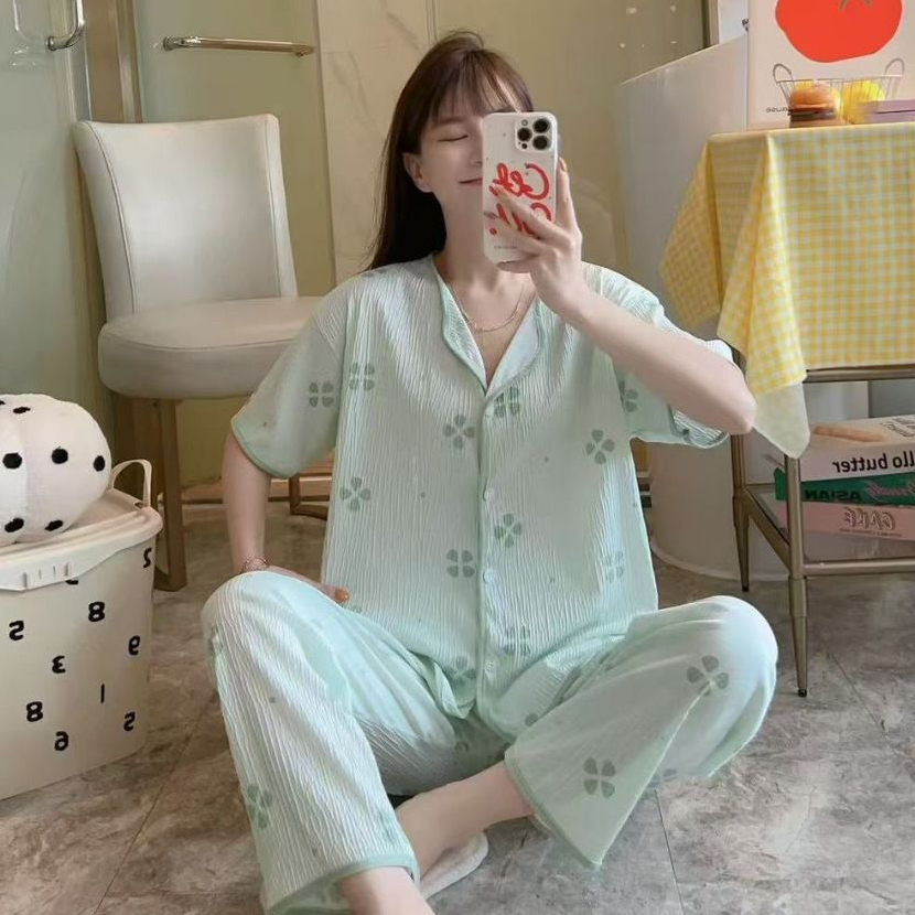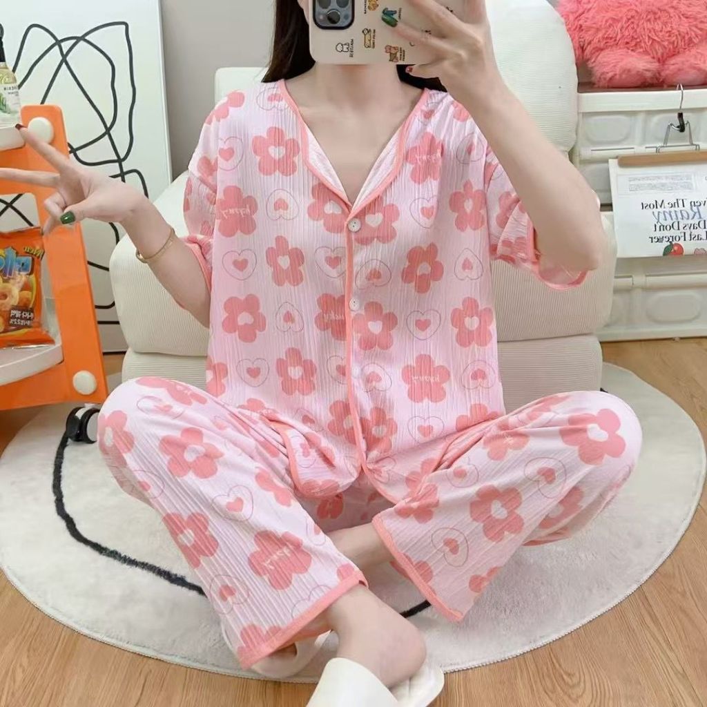 Baju Tidur Perempuan Pyjamas Women Baju Tido Free Size Sleepwear Woman Baju Set Seluar Lengan Pendek Seluar Panjang 睡衣