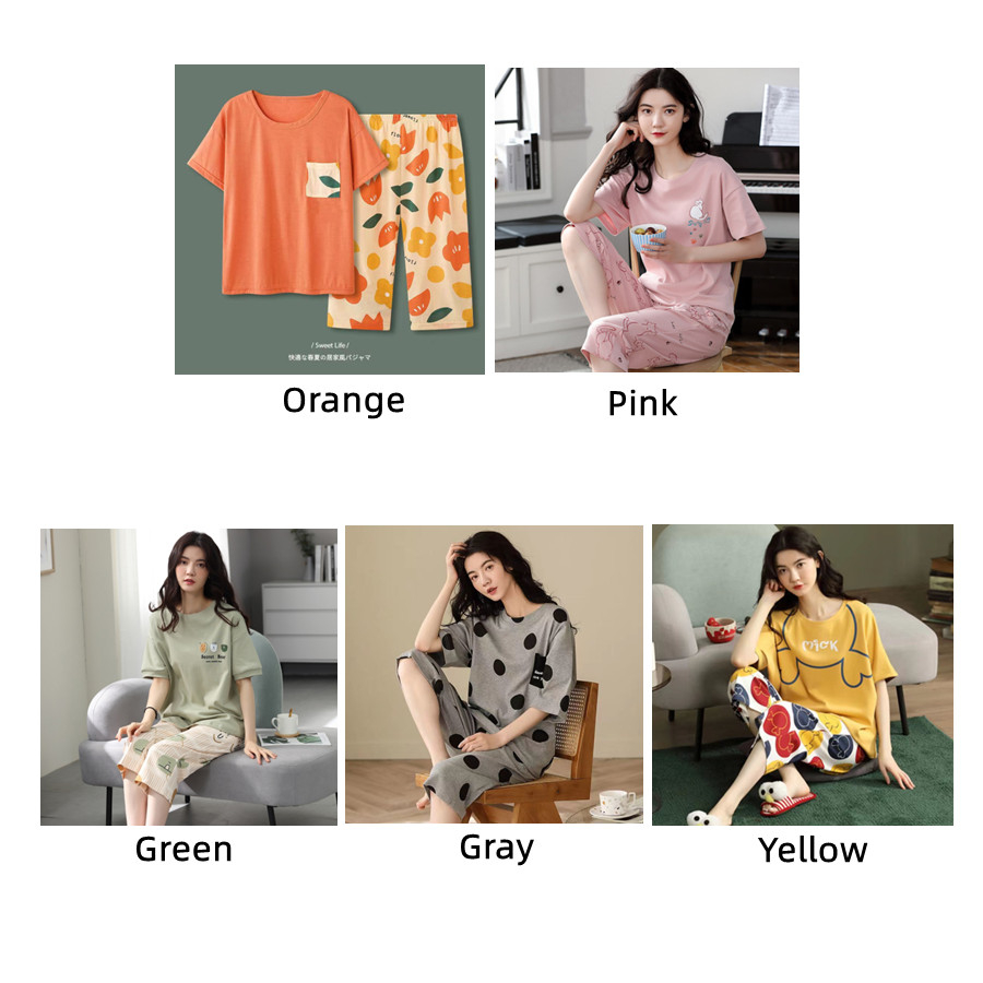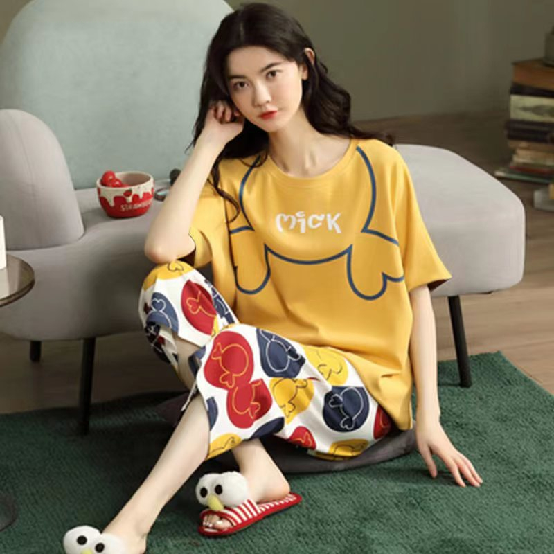 Baju tidur plus size Pajamas short sleeve 7-point pants suit two cartoon household clothes night dress T80