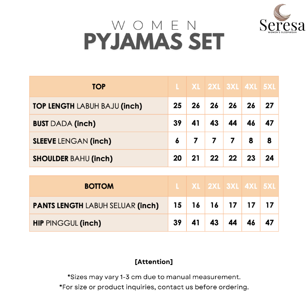 Baju Tidur Wanita Pyjamas Set Lembut Sejuk Comel Selesa Women Sleepwear Comfortable Breathable
