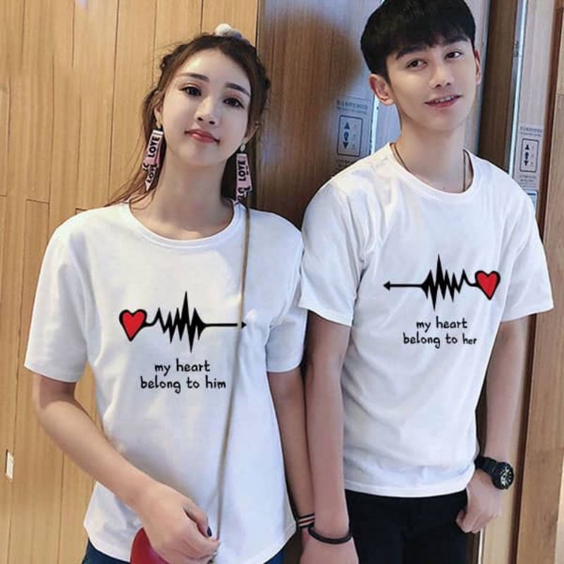 ?BAJU VIRAL COUPLE TSHIRT ?VIRAL MY HEART BELONGS TO HIM AND MY HEART BELONGS TO HER 100% COTTON READY STOCK