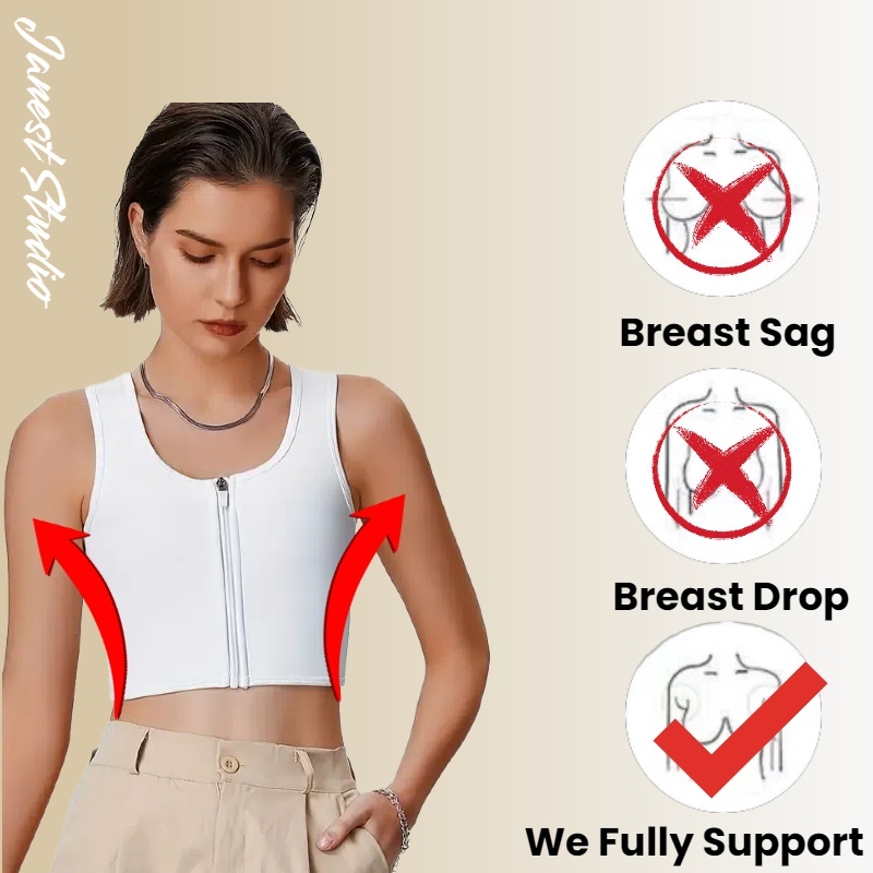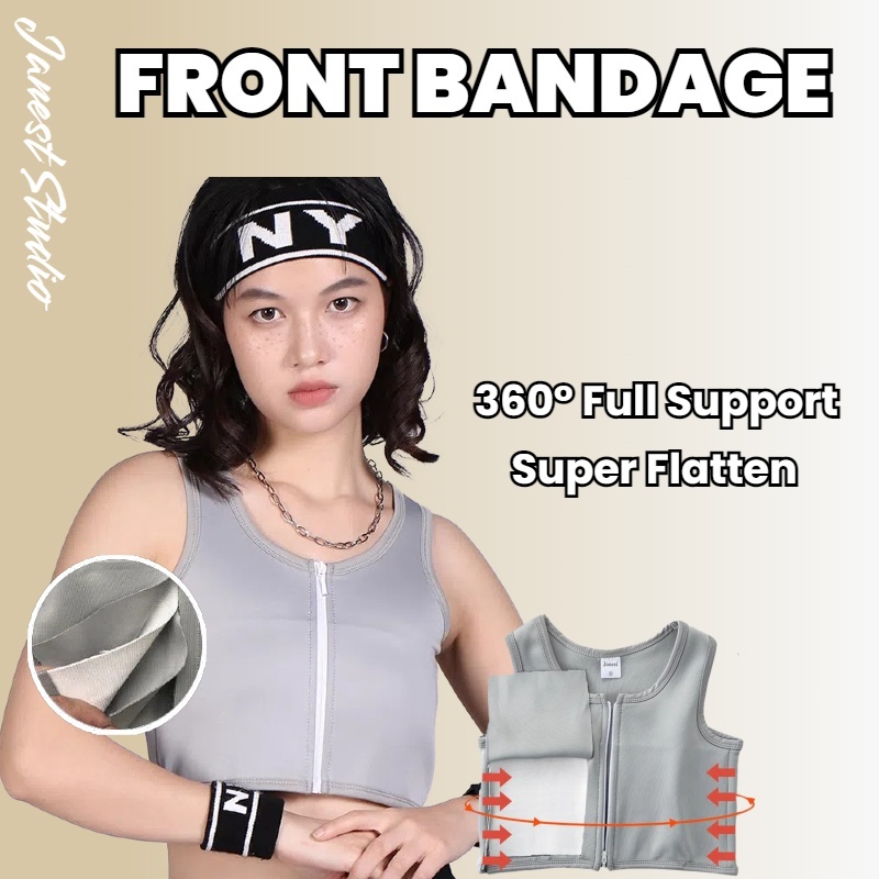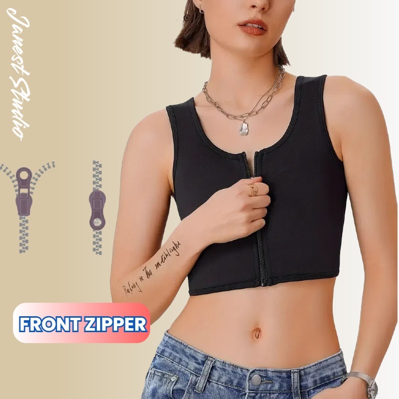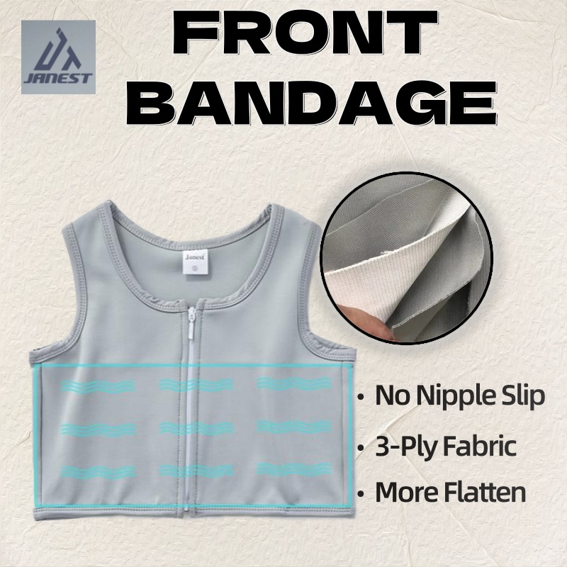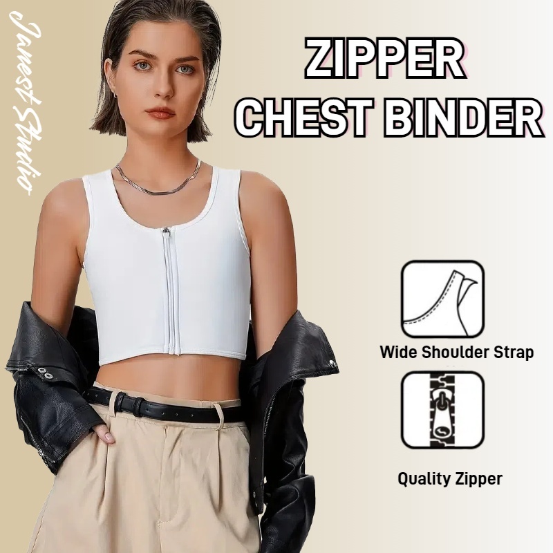 Bandage Chest Binder baju melayu budak baju melayu budak Front Zipper Short Breathable Breast Binder Binder 3 Colors 拉链绷带束胸 超平 透气竹炭面料 Cosplay