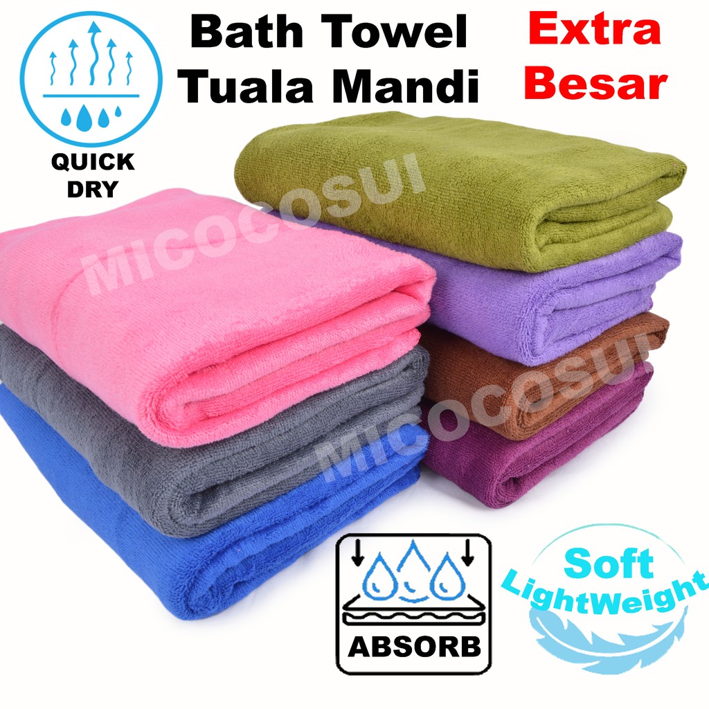 Bath Towel Tuala Mandi Dewasa Extra Besar Microfiber Janji Serap Air !! 70*140cm Dan 80*160cm