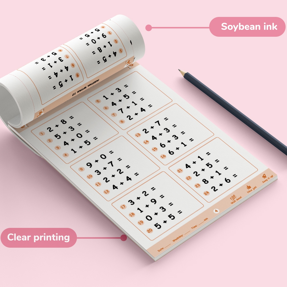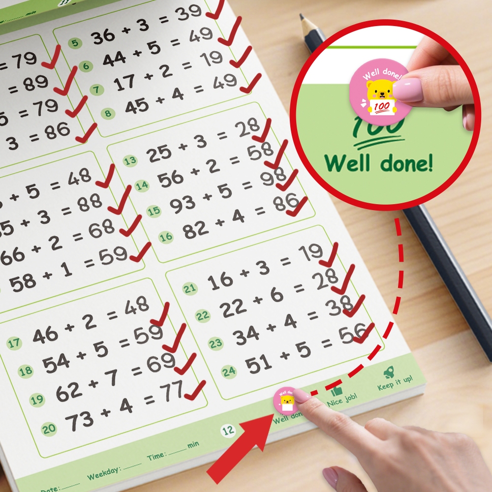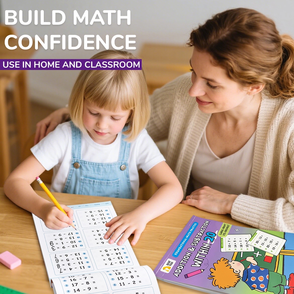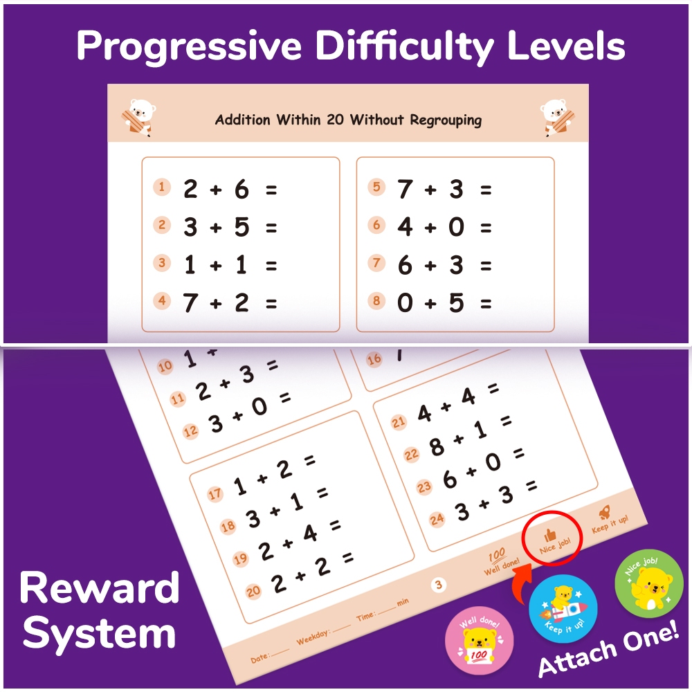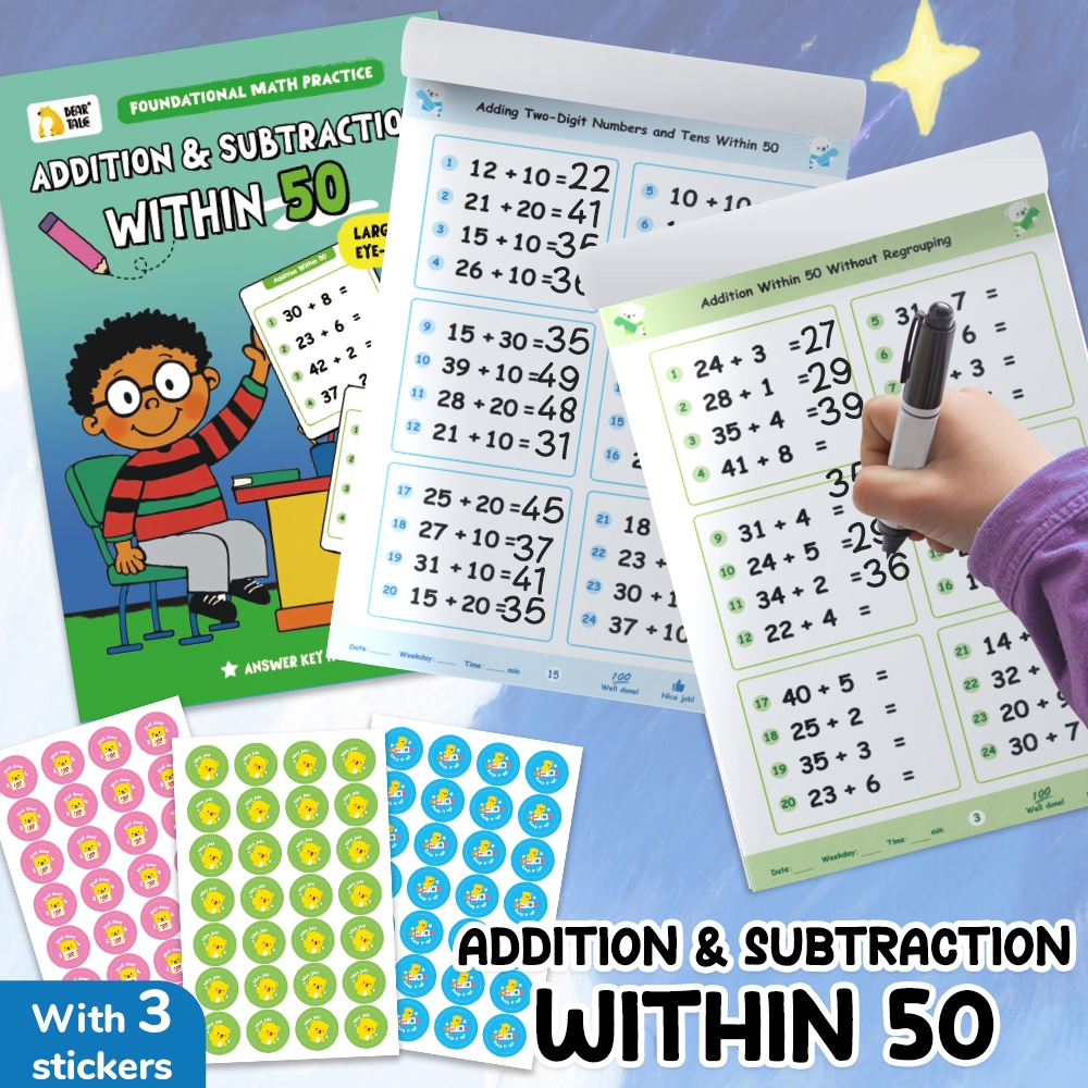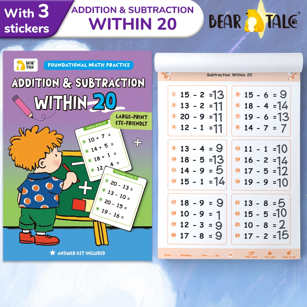 BEAR TALE 64 PCS Kids Math Workbook Addition & Subtraction Practice Books with Stickers Learning