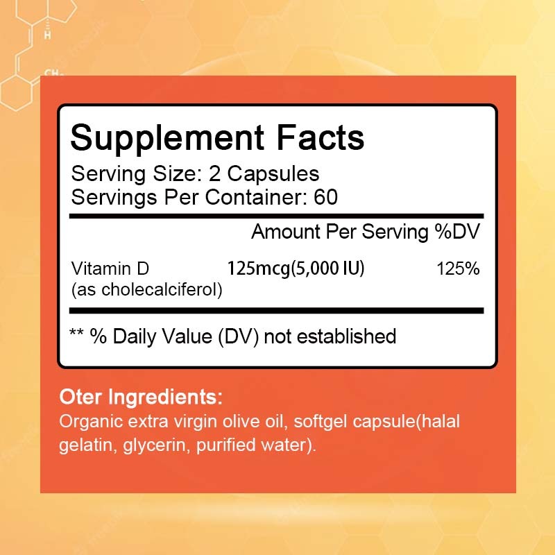BEAU Vitamin D Capsules Vitamin D-5000IU Provides Immune Support, Promote Muscle Function,Bone health, For Men&Women