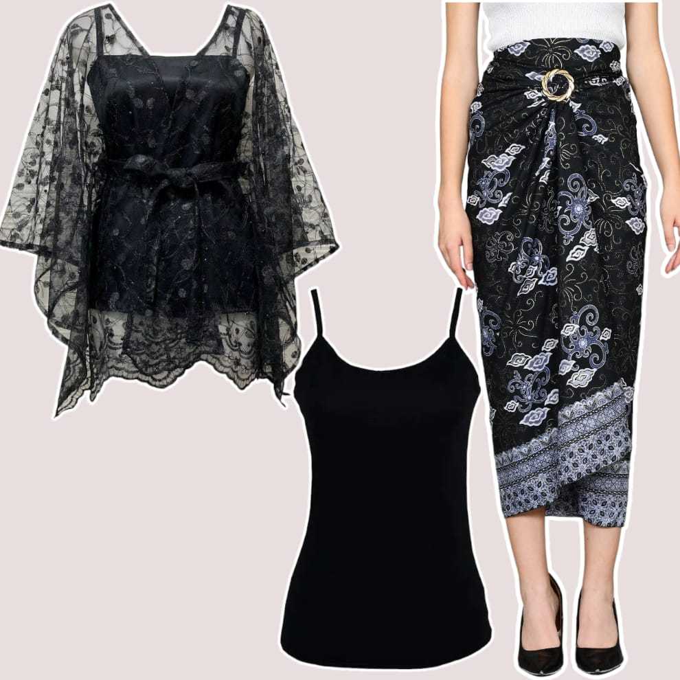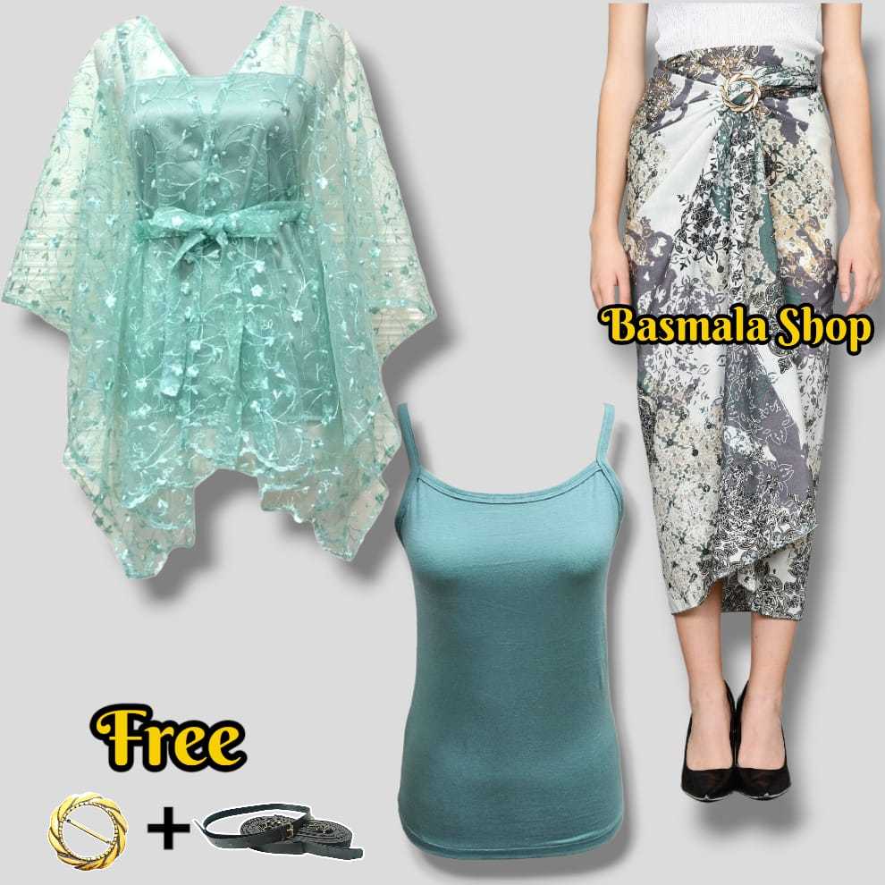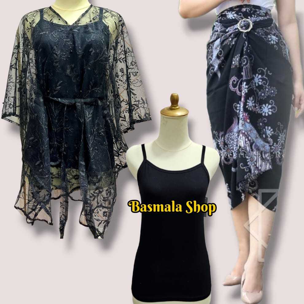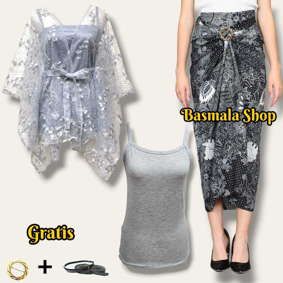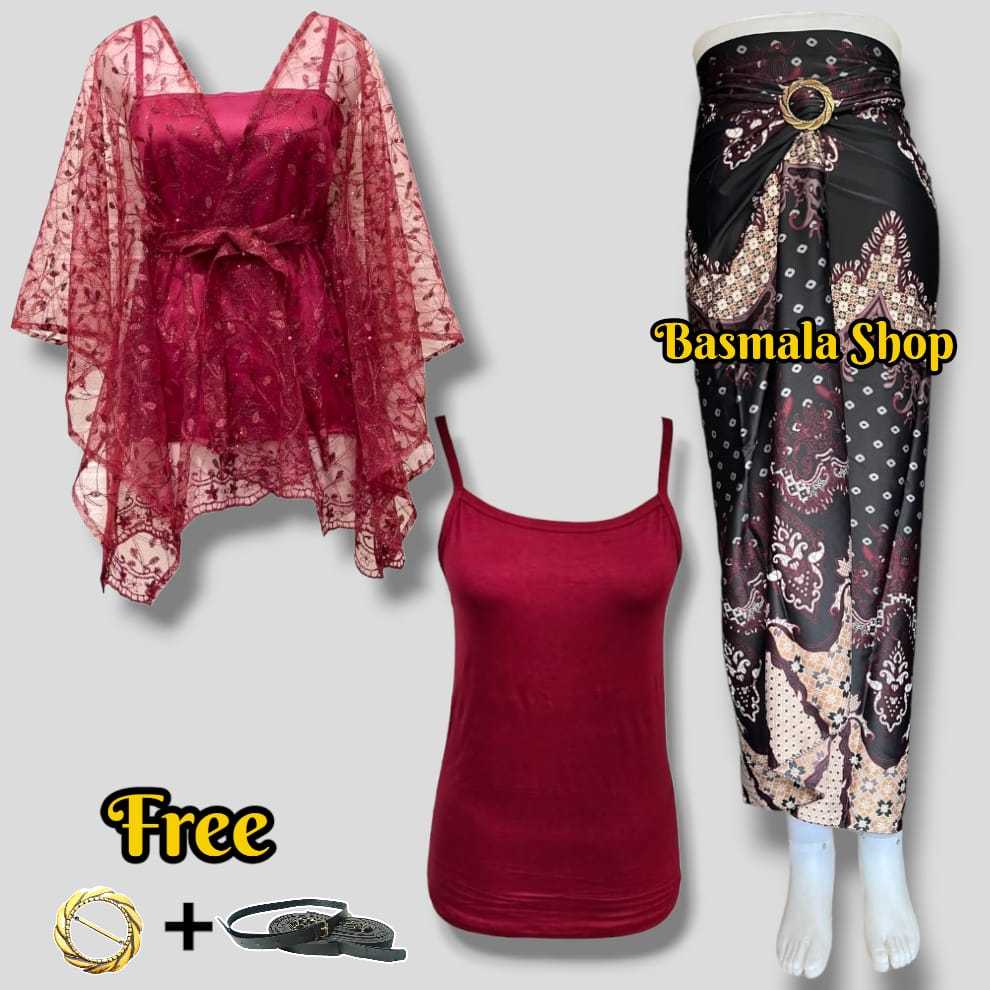 Beautiful ribbon tulle outer kebaya Set with batik wrap skirt for graduation reception, bridesmaid, modern, luxurious kebaya 2024