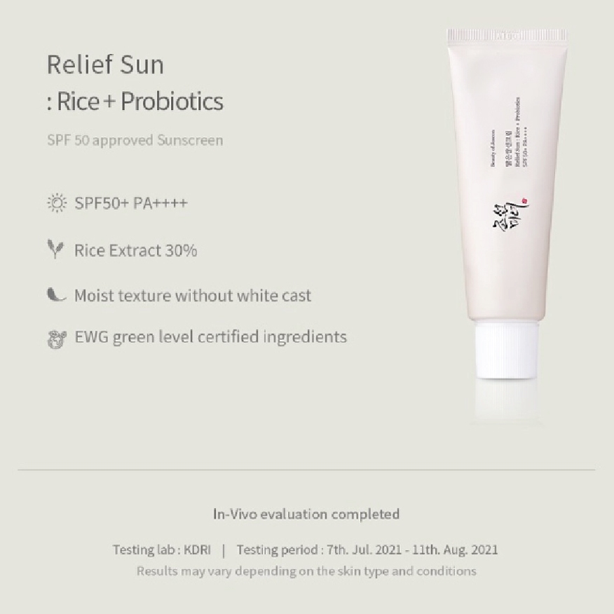 Beauty Of Joseon Relief Sun : Rice + Probiotics (SPF50+ PA++++) 10/50ml [Rice Extract+ Grain fermented]