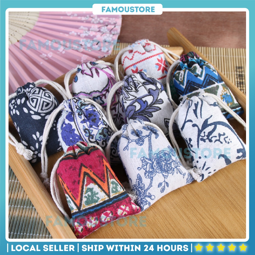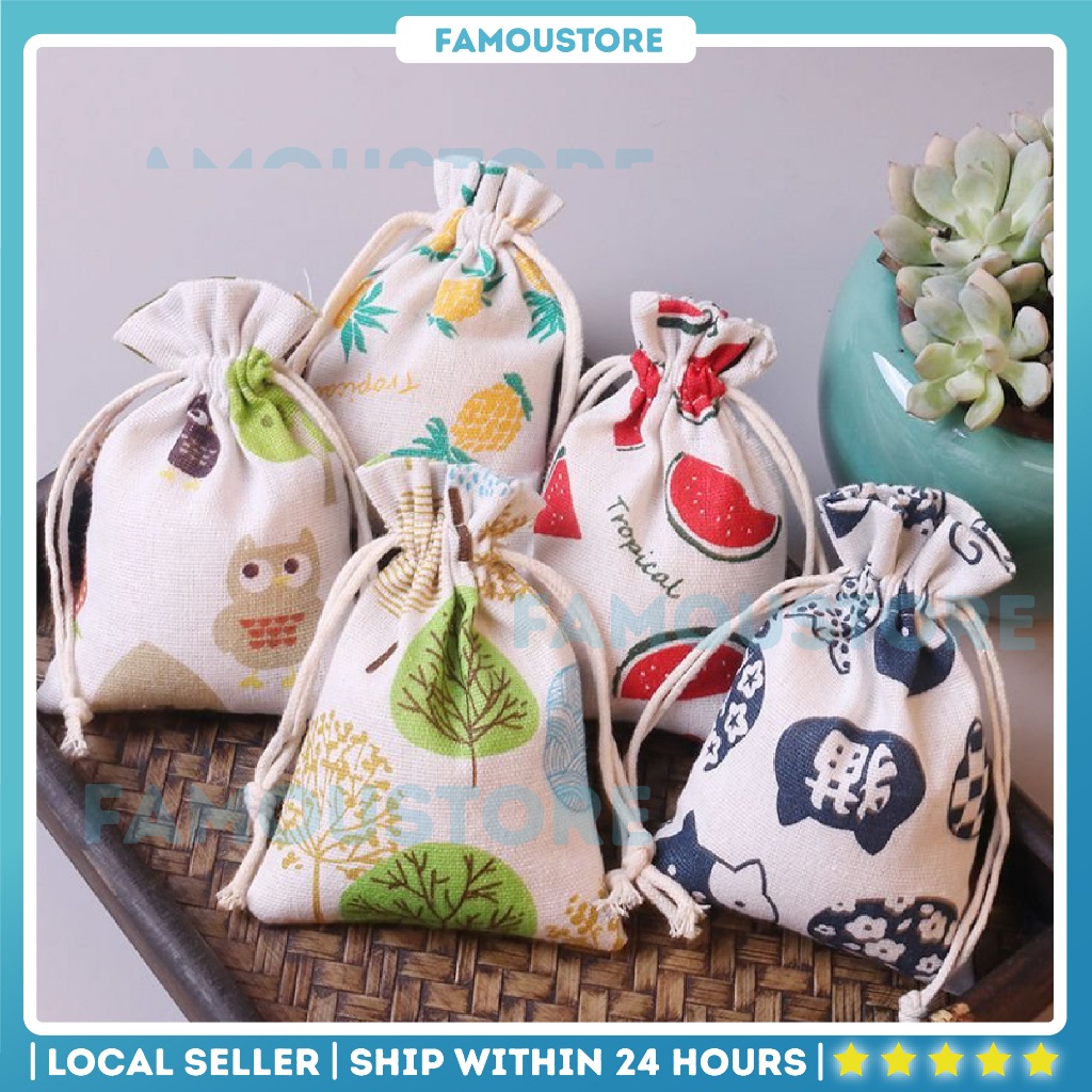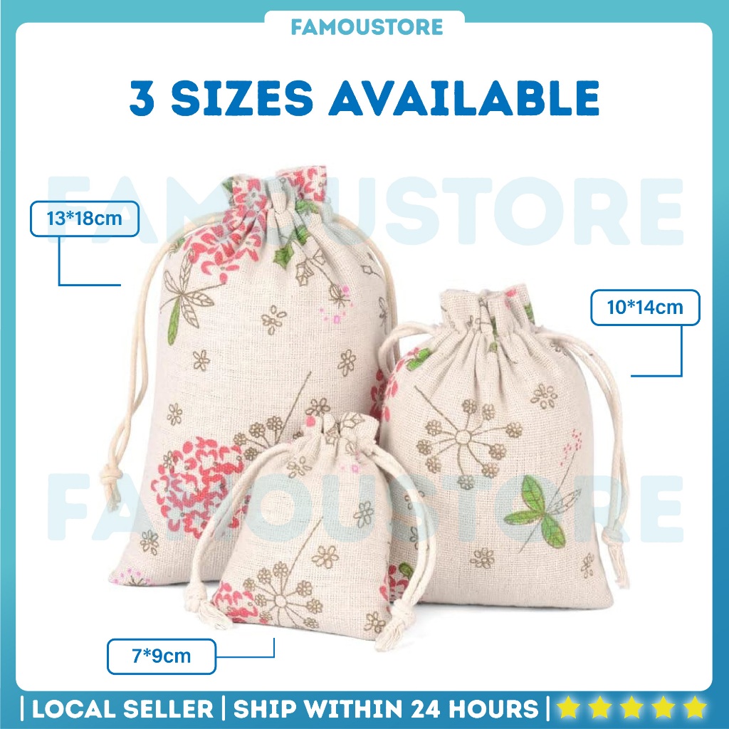 Beg Cotton Drawstring Beg Guni Uncang Emas Art Style Pouch Bag Jewellery Bag Gift Bag Linen Burlap Bag 收納袋 麻布袋