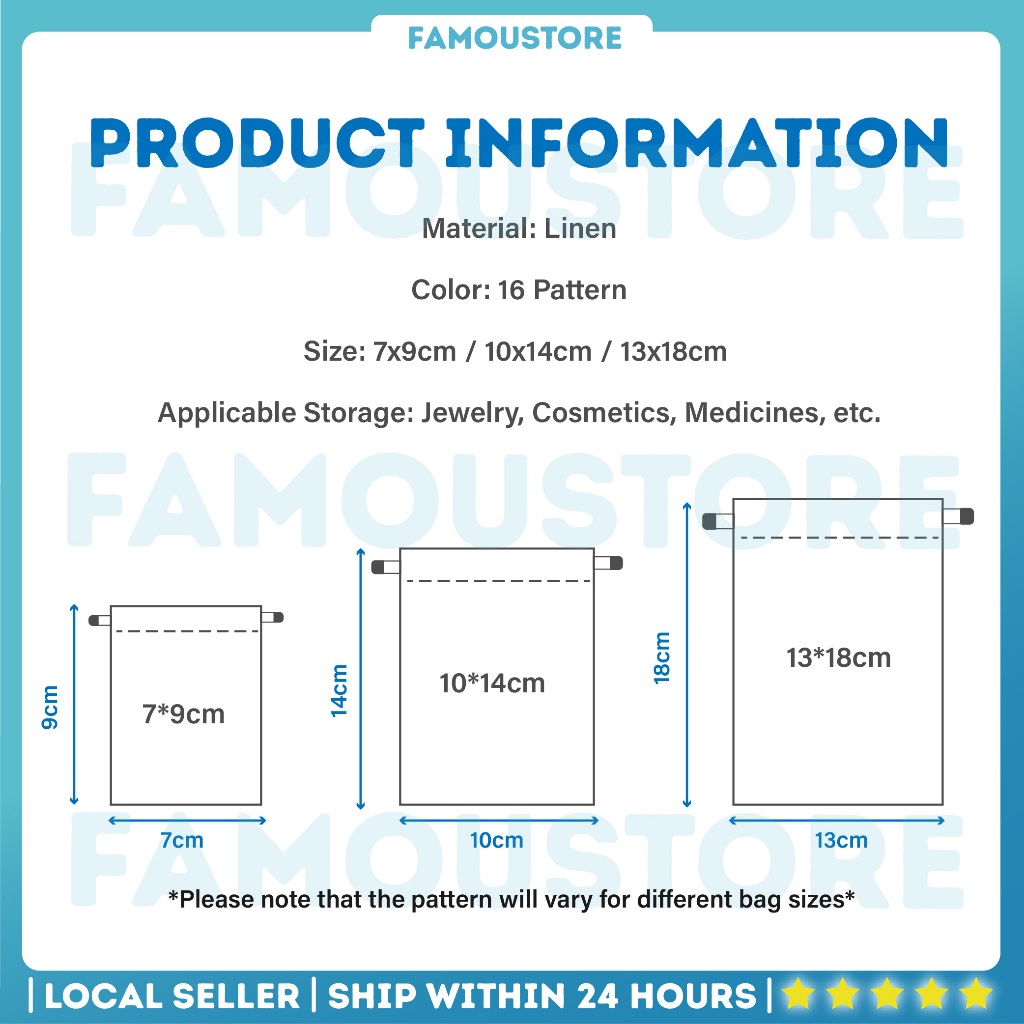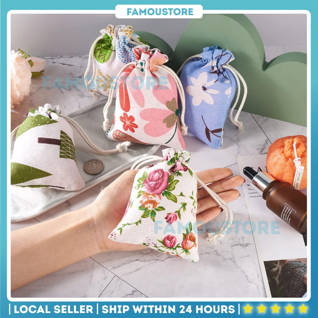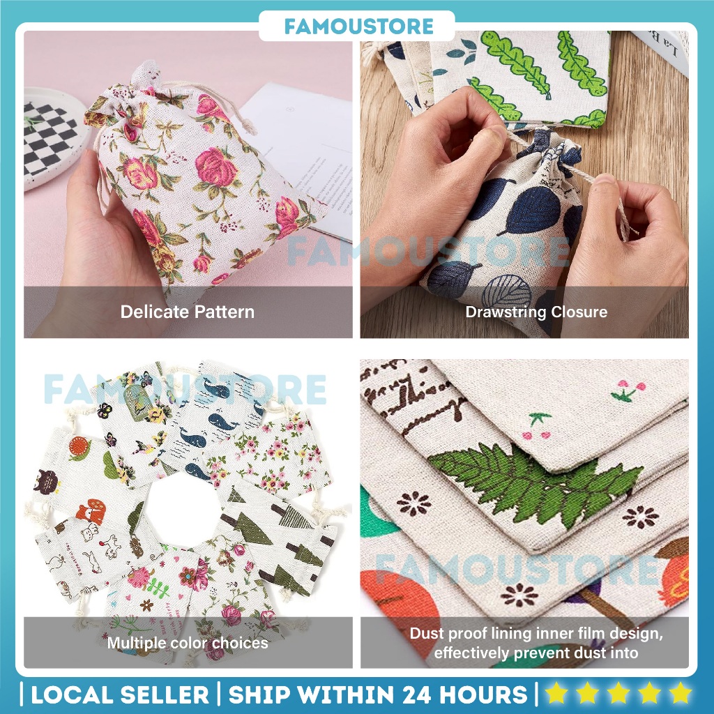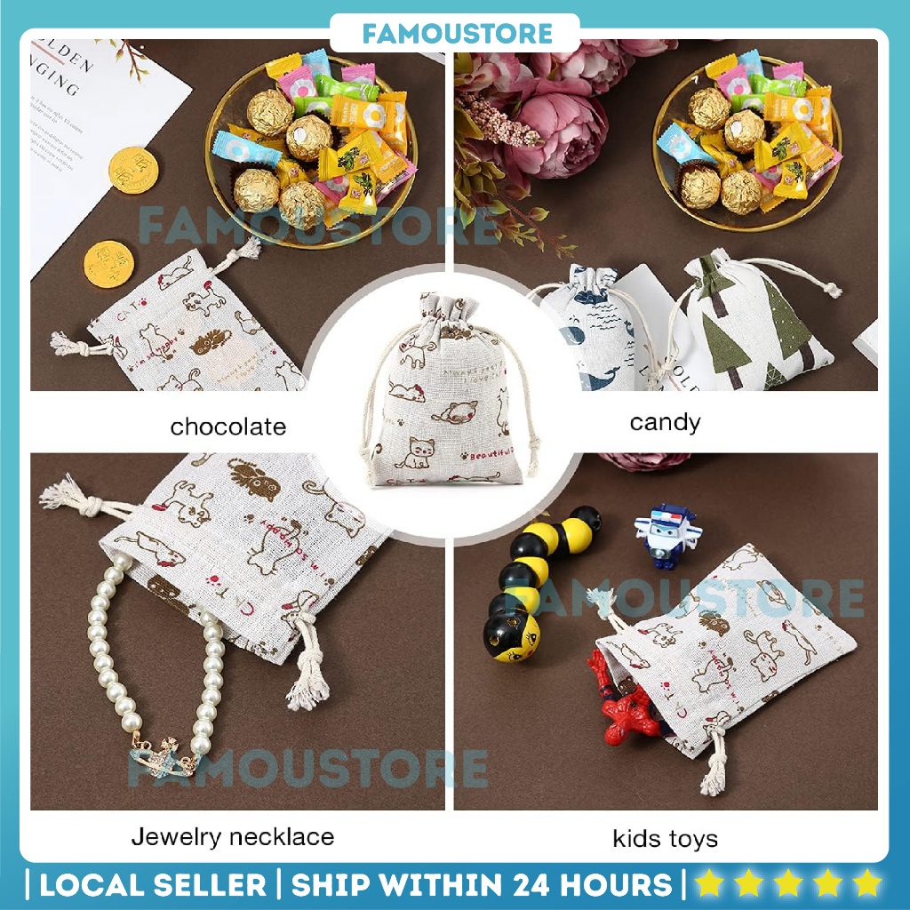 Beg Cotton Drawstring Beg Guni Uncang Emas Art Style Pouch Bag Jewellery Bag Gift Bag Linen Burlap Bag 收納袋 麻布袋