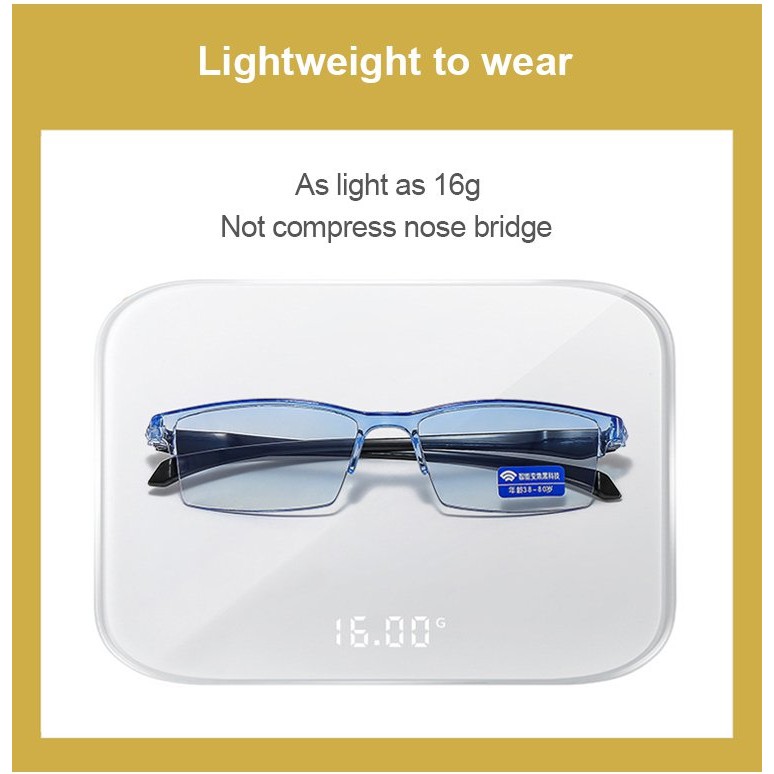 ?Beli 1 Dapat 2/COD?Cermin mata baca berperingkat bersepadu zum pintar anti-cahaya biru pelindung mata cermin mata astigmatisme/ringan preskripsi cermin mata baca pelarasan automatik 100°-700°/kanta d
