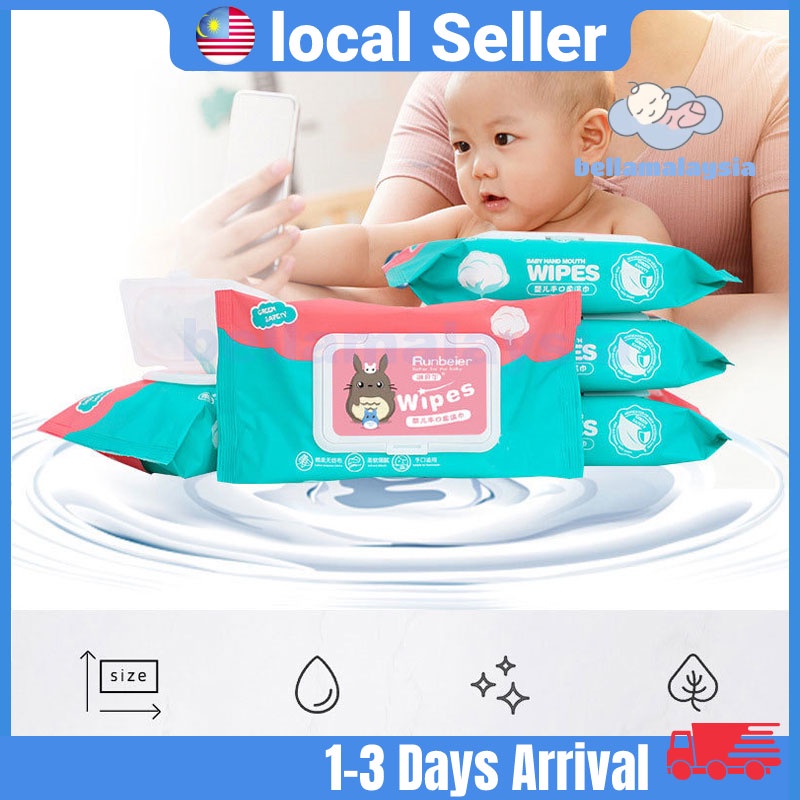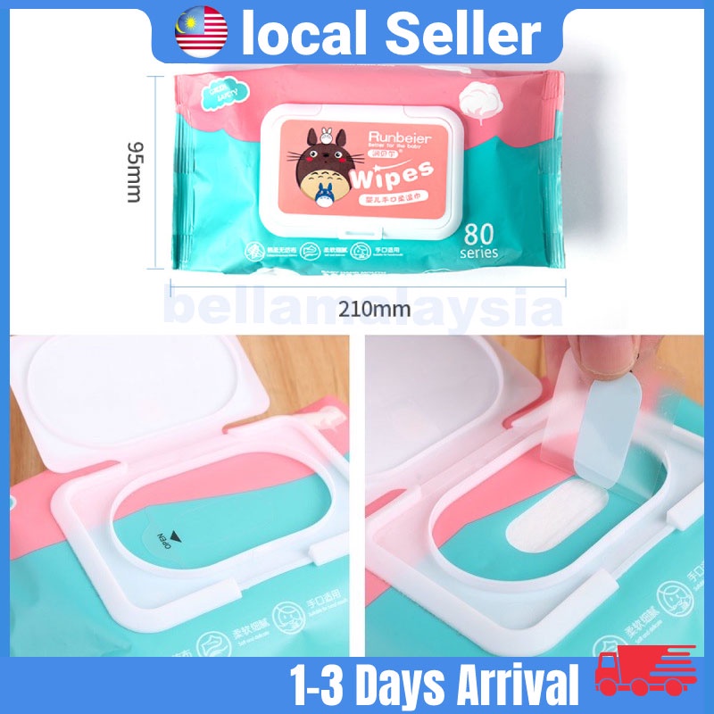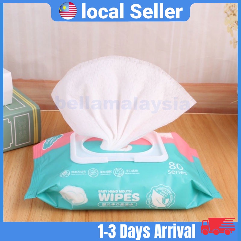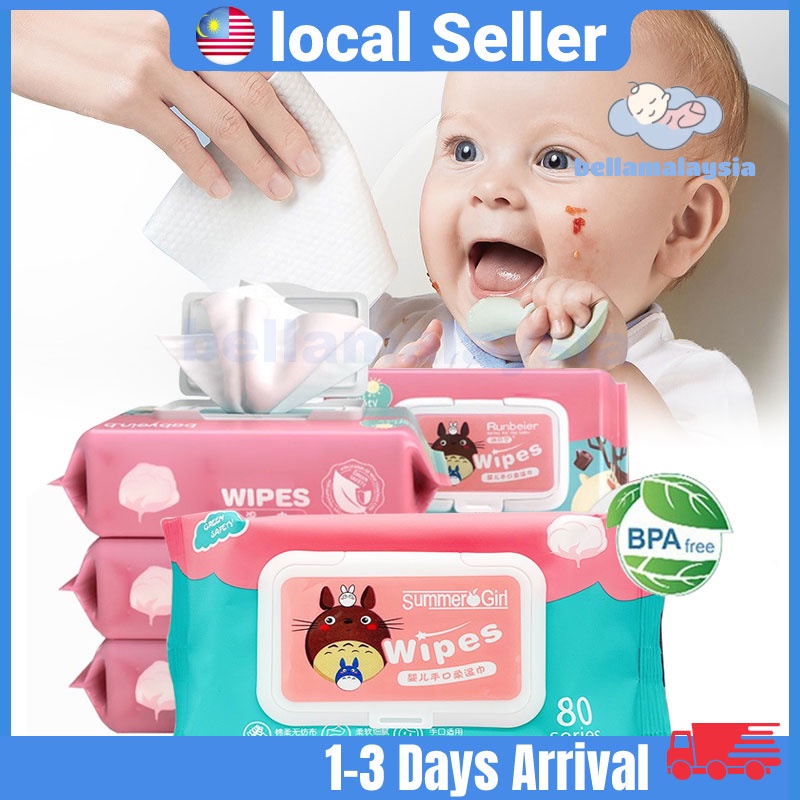 Bella 80Pcs/Set Premium Baby Wet Wipes Baby Wipes Tisu Basah (Non-Alcohol Fragrance Free Parabens Free)湿纸巾 纸巾