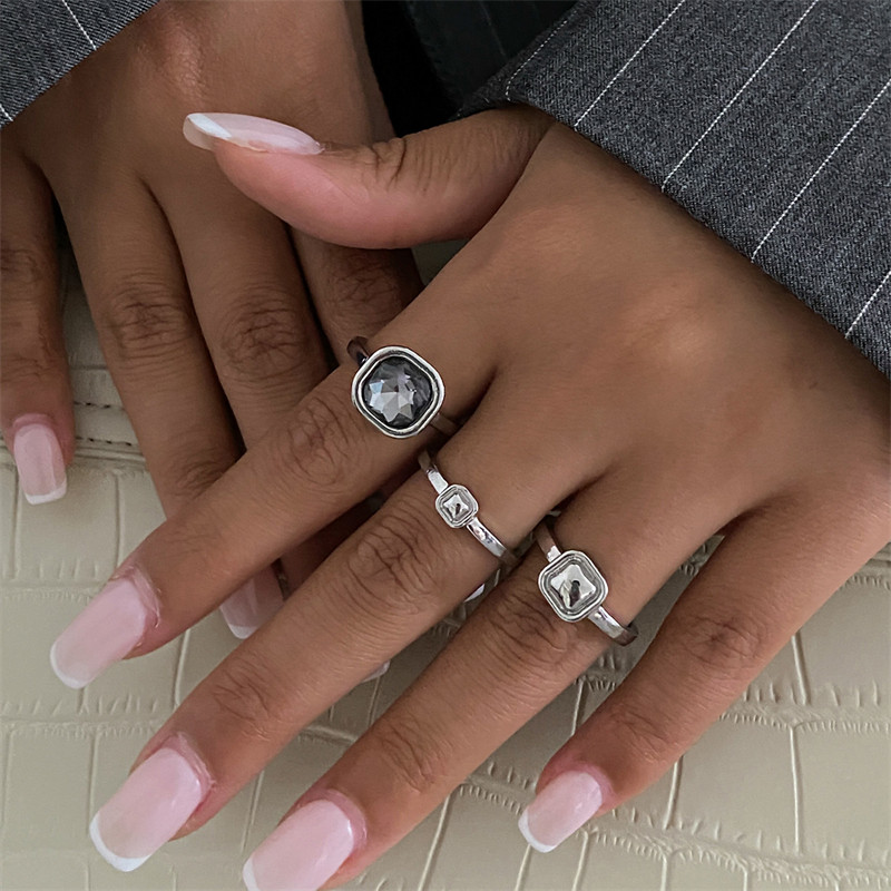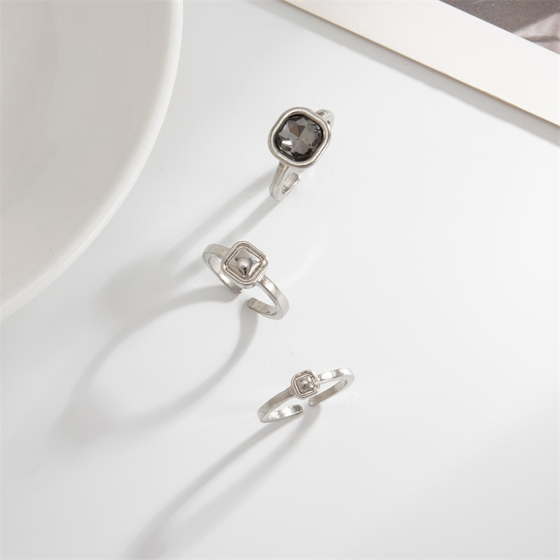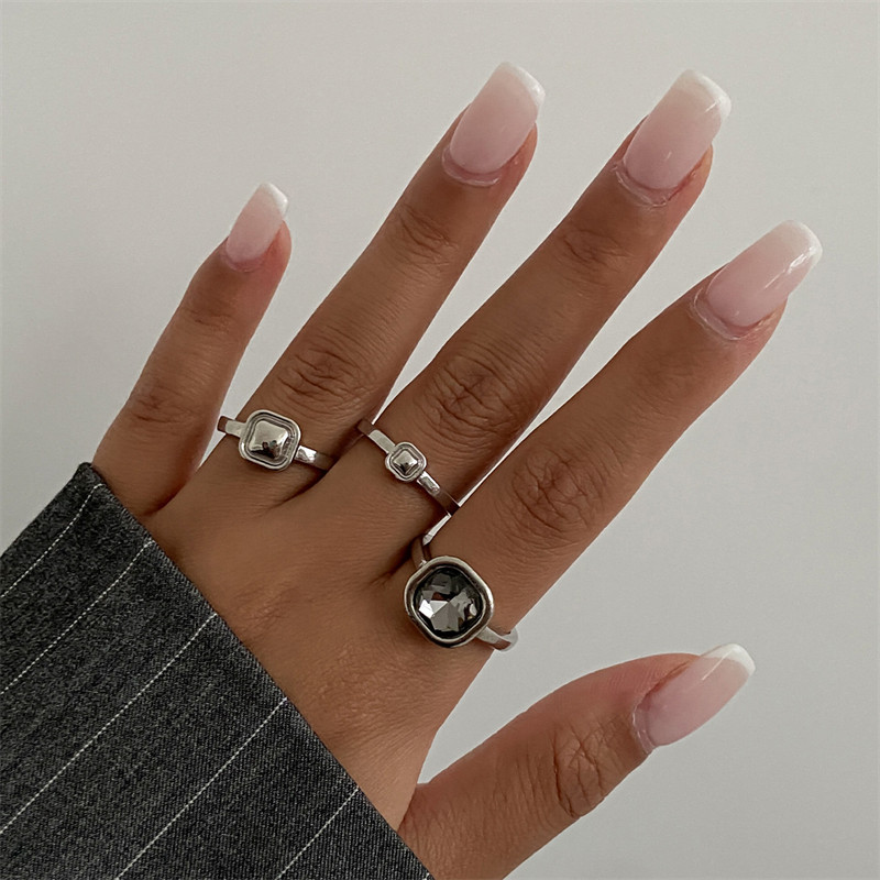 BELLA-Bee Vintage Geometric Acrylic Heart Ring 3-Piece Set Simple Fashion Accessory Holiday Gift Daily Wear