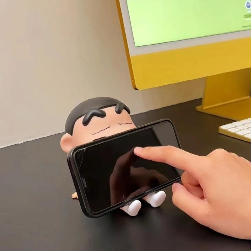 BF Crayon Shin-Chan Phone Holder Anime Figurine Desktop Ornament Cartoon Mobile Phone Stand