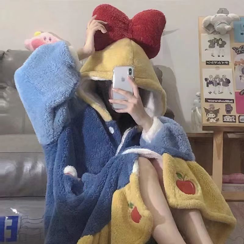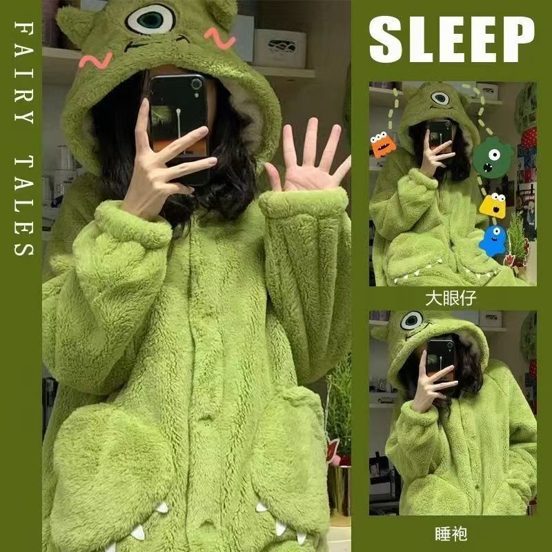 Big Eyes Strawberry Bear Coral Fleece Cartoon Girlfriends Nightgown Warm Home Suit Influencer Cute Suit Student Party#wan12.12