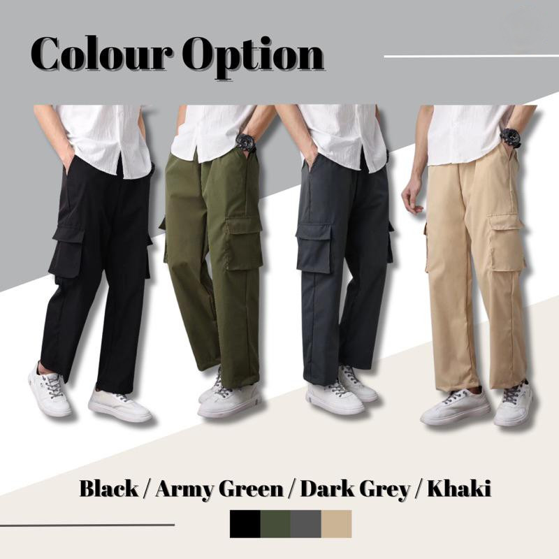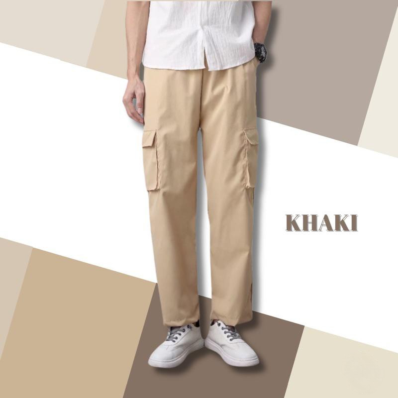 Big khaki cargo pants, multiple pockets, straightforward, casual style, men and couples, trousers, men's loose pants, ready for stock