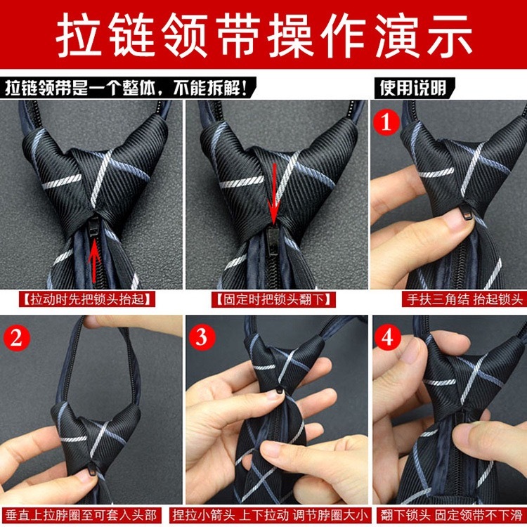 Black Tie Men's Formal Tie Zipper Nectie Accessories Suit Hand Tie