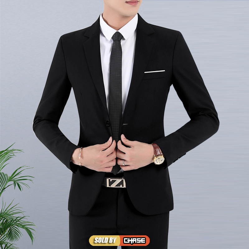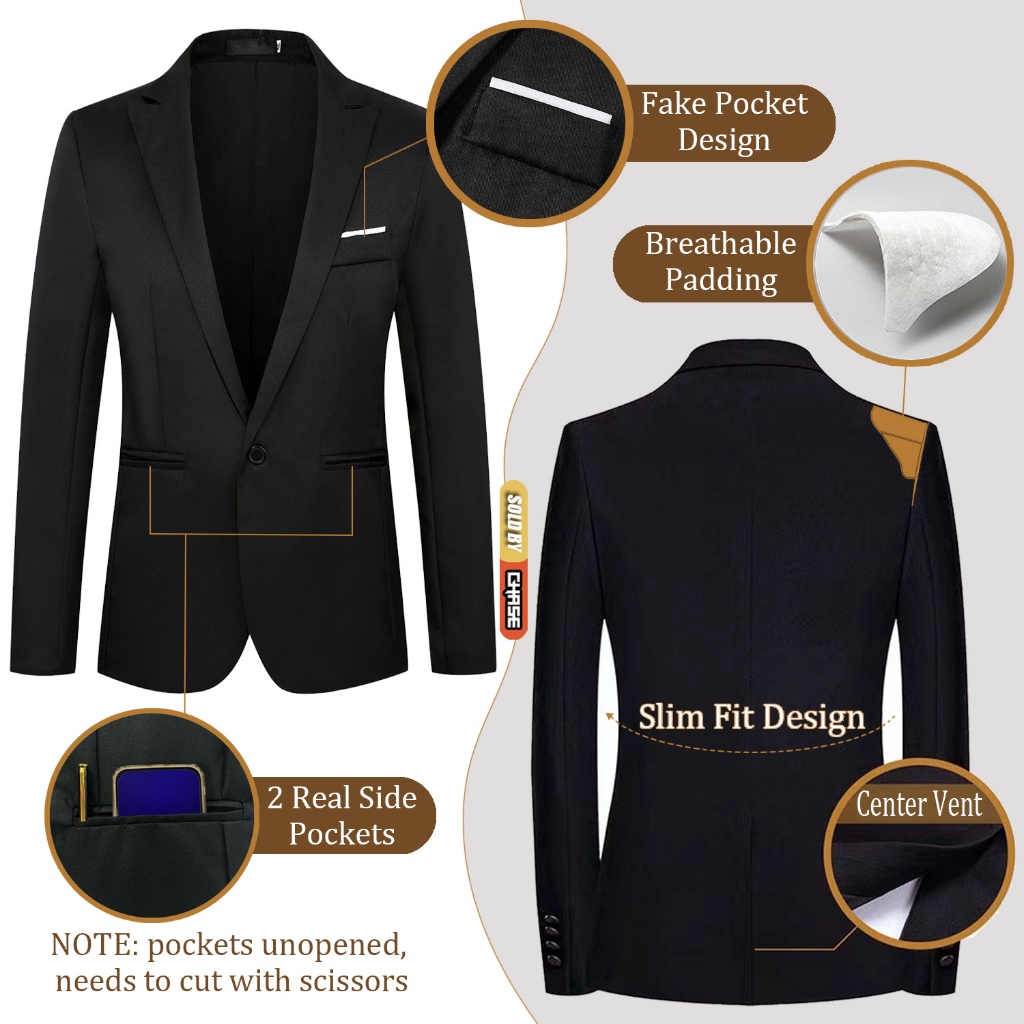 Blazer Men Slim Fit Casual Formal Business Suit Jacket Korean Style Long Sleeve One Button Wedding Tuxedos Coat