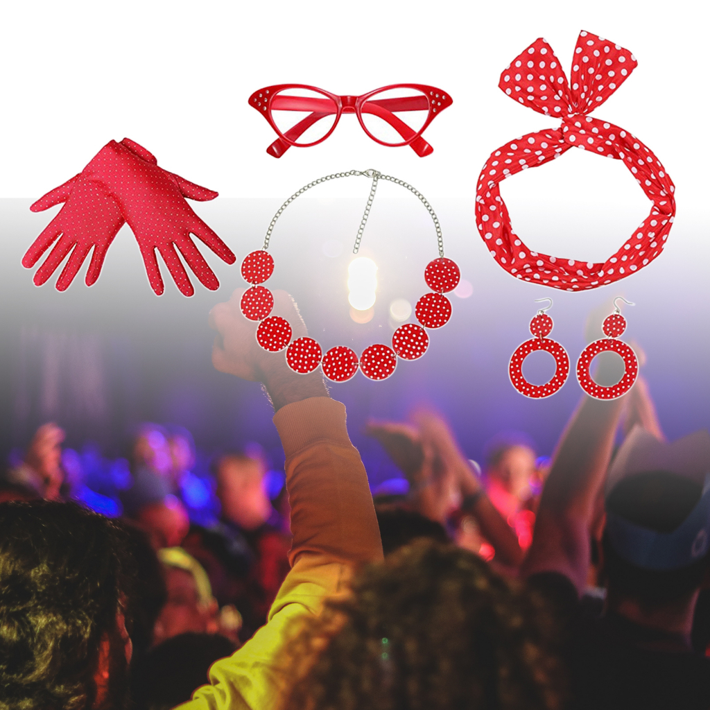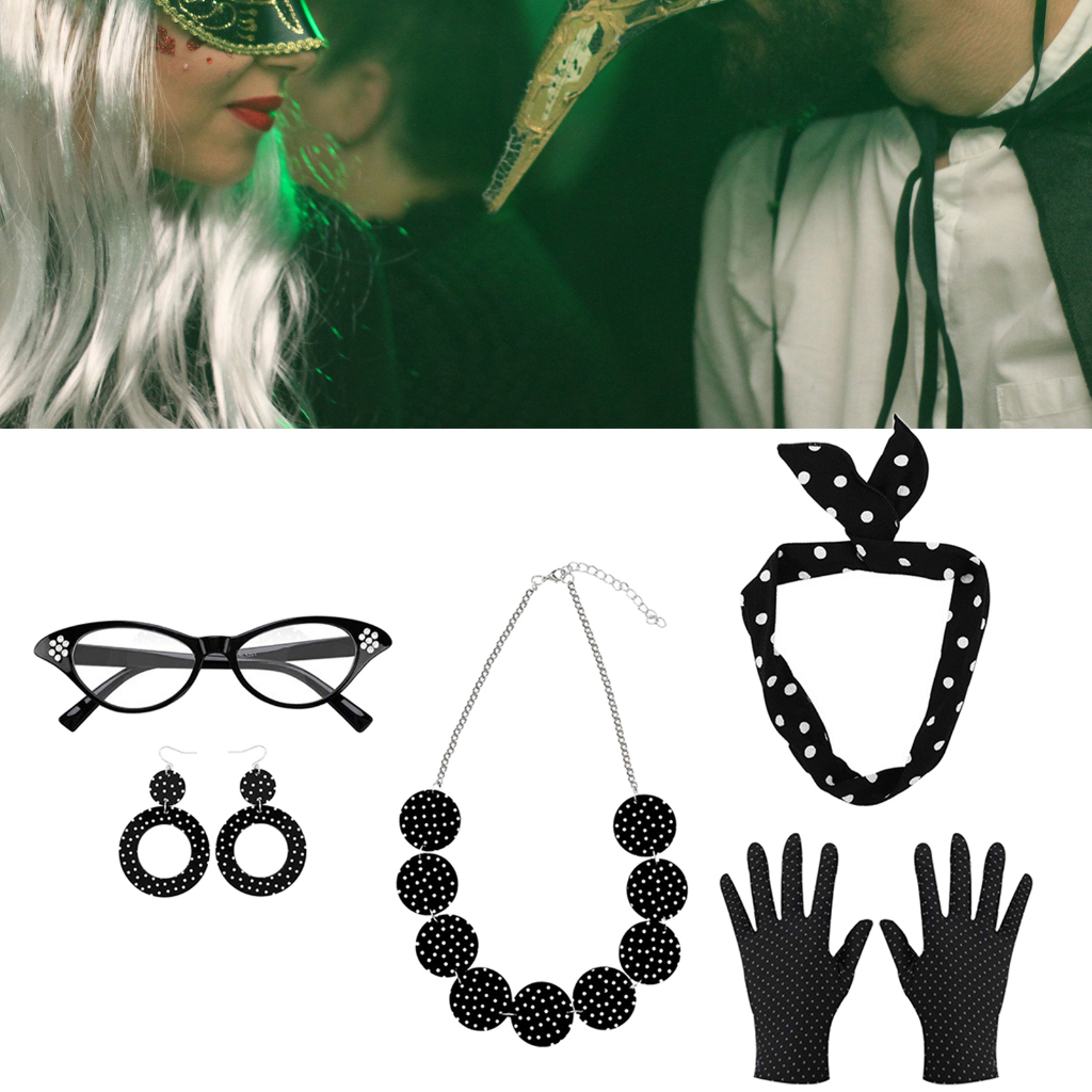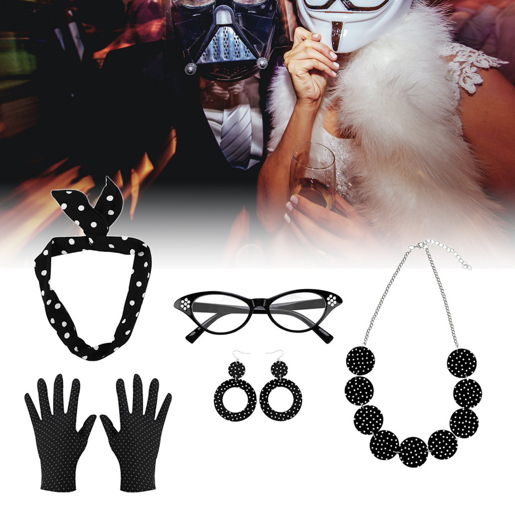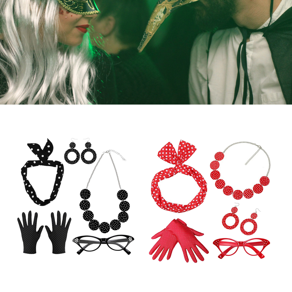 [BlesiyaMY] Retro 1950S Womens Costume Set Glasses Gloves Polka Dot for Halloween