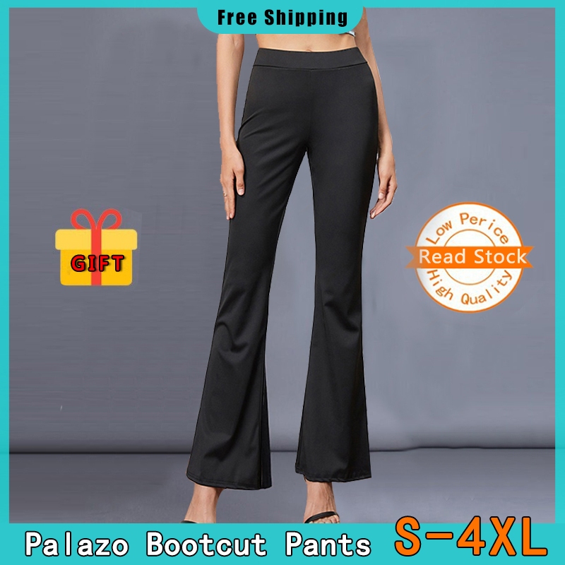 Bootcut Women Pants Sukan Vintage Black Straight Cut High Waist Muslimah Palazzo Tulang Pants