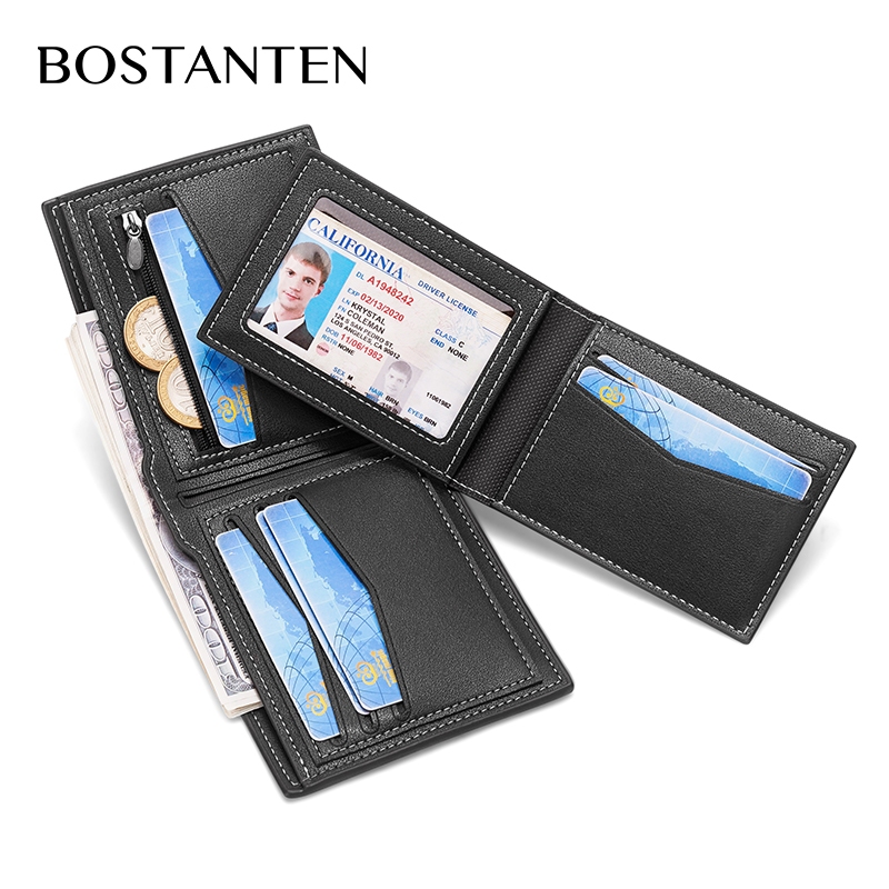 Bostanten Business Style Pu Leather Short Wallet For Men