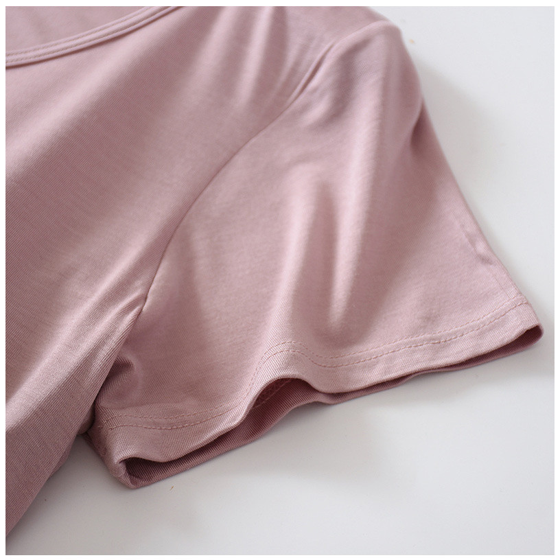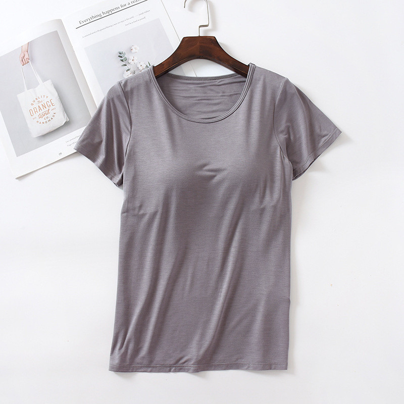 Bottoming Shirt with Cup Top Modal Women Slim-fit Women with Chest Pad T-Shirt Without Wearing Bra Round Neck Short Sleeve One Piece