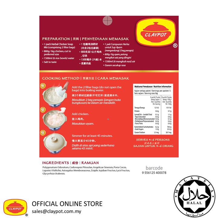 [BOX DEAL] CLAYPOT Kau Traditional Herbal Soup/Sup Herba Tradisional Kau 40g (12 Unit)