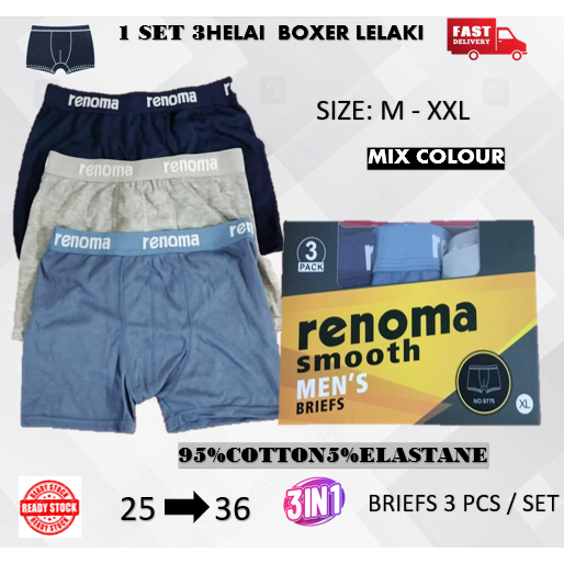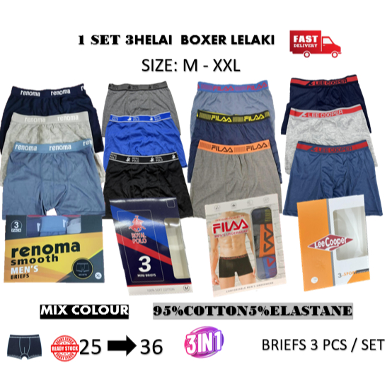 Boxer Lelaki Harga Borong Underwear Briefs M-2XL 3pcs/1set 7115