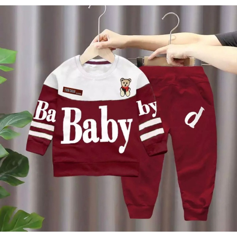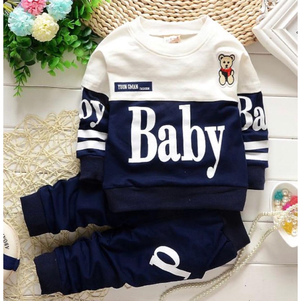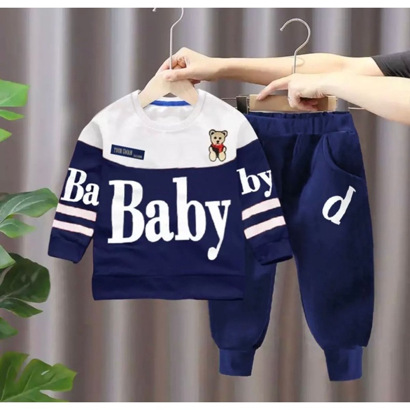 Boys' long-sleeved shirt and jogger sweater set with panda motif, ages 3 months - 5 years
