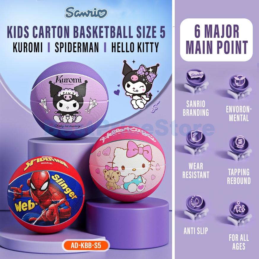 BPA High Grade Size 5 Kids Basket Ball Rubber Basketball Children Kuromi Spiderman Kitty Kid Balls Bola Keranjang KBB-S5