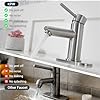 Brushed Nickel Bathroom Sink Faucets Single Hole Single Handle Stainless Steel Bathroom Faucet RV Faucet Deck Mount 1 Hole or 3 Holes with Pop-up Drains with Overflow