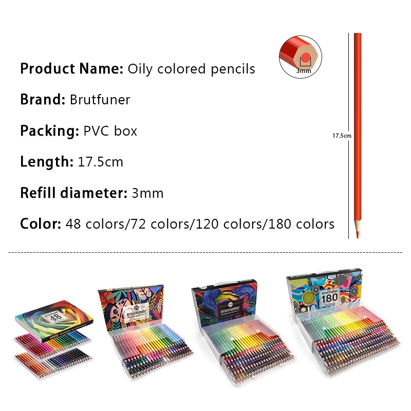 Brutfuner 180 Colors Oil Pencils Set 48/72/120/180 Colors Professional Painting Sketching Art Supplies Pen Warna Minyak