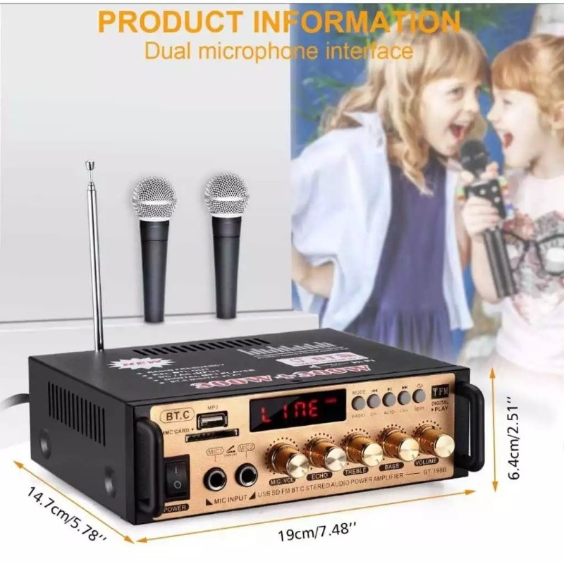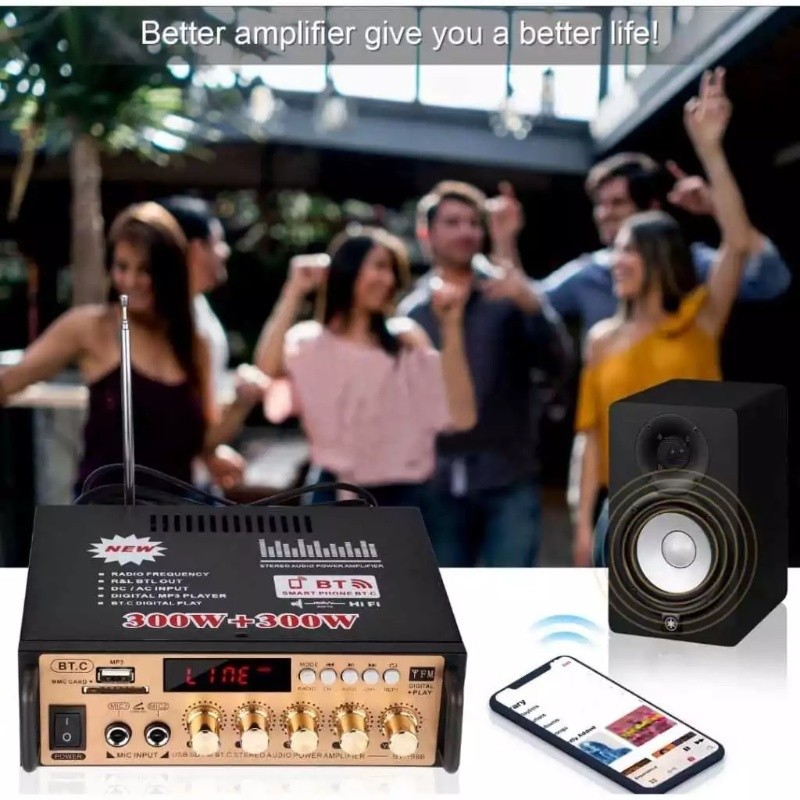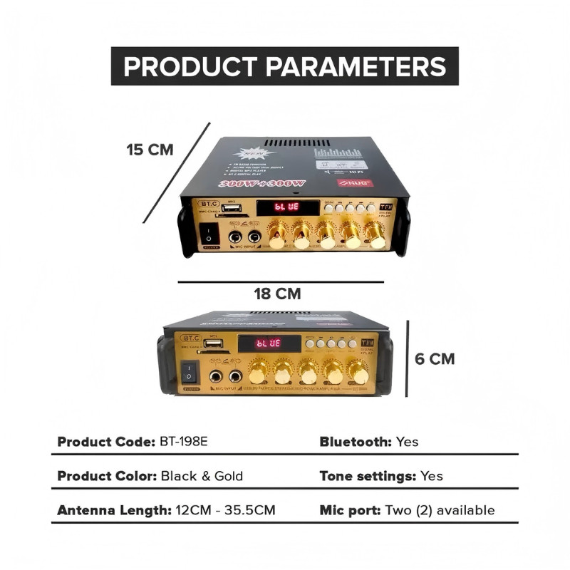 BT-198E 300W+300W Digital HIFI Bluetooth Stereo Audio Amplifier with Bass and Treble Control Bluetoth Power Amplifier