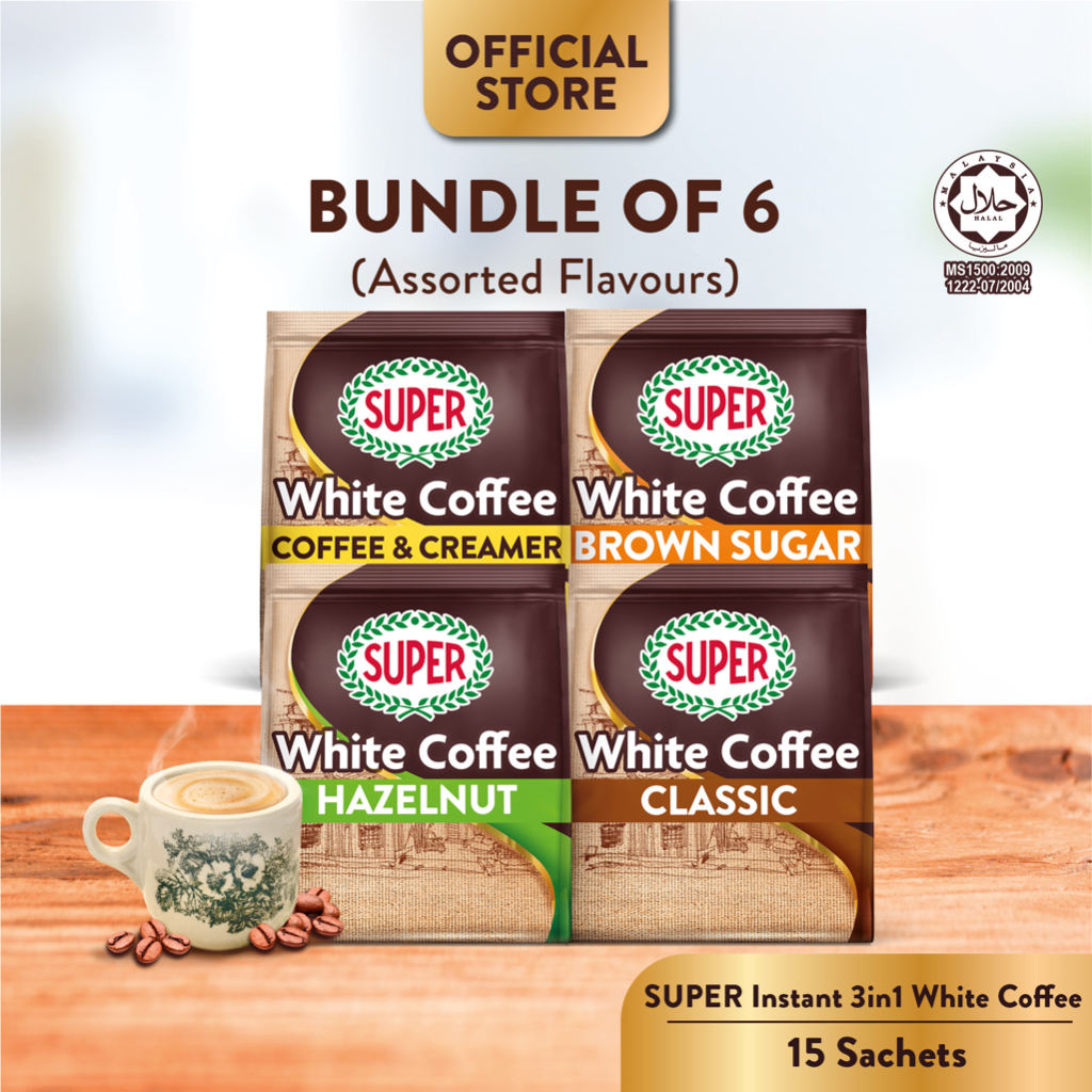 (Bundle of 6) SUPER Instant 3in1 White Coffee, 15 sachets [HALAL]