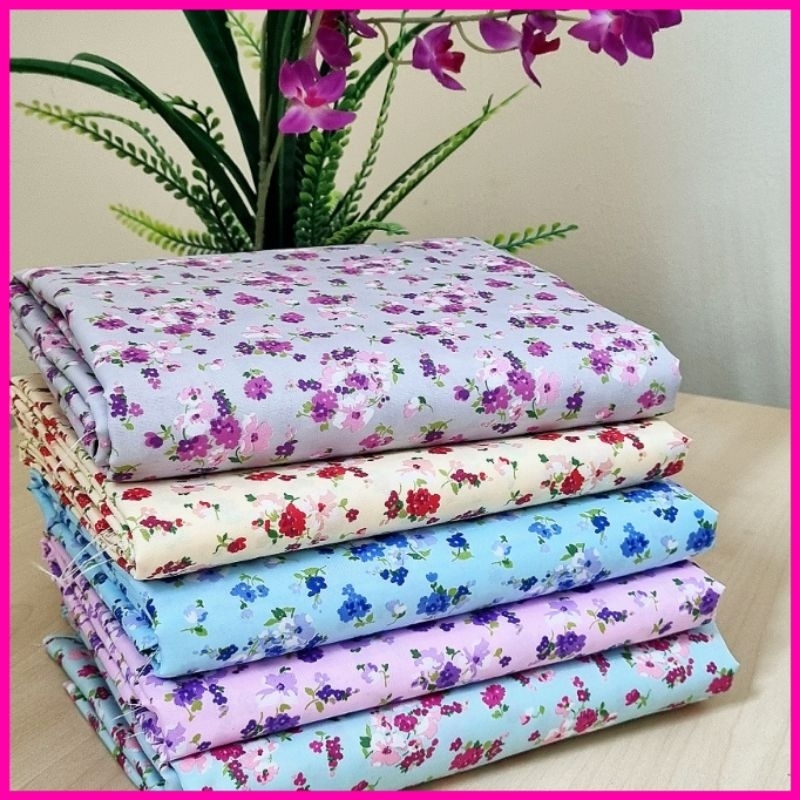 (BUNGA/ POLKADOT / PETAK BESAR / PETAK KECIL ) Kain Cotton polyster meter / kain meter corak /kain dot dot