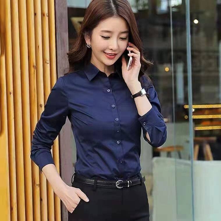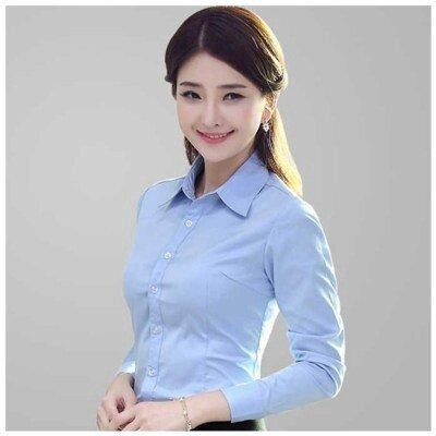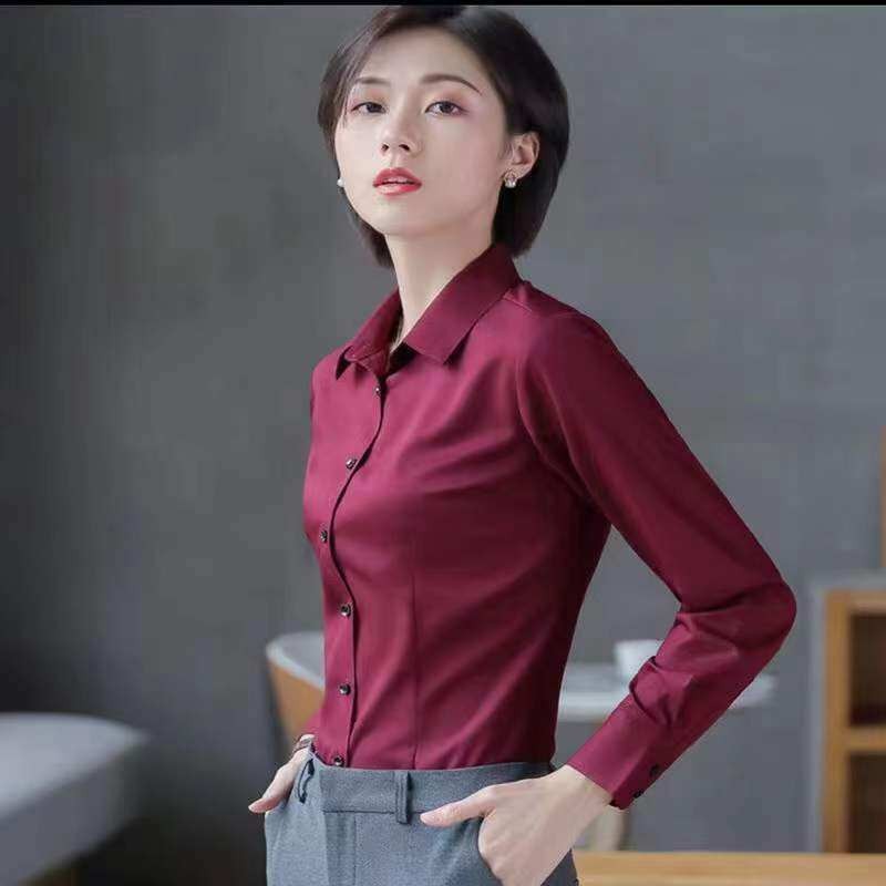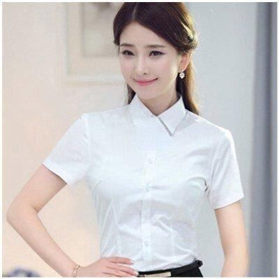 Business Formal Long Sleeve Shirt For Work & Office, Solid Color Lapel Neck Shirt, Women's Slim Fit Short Sleeve Shirt